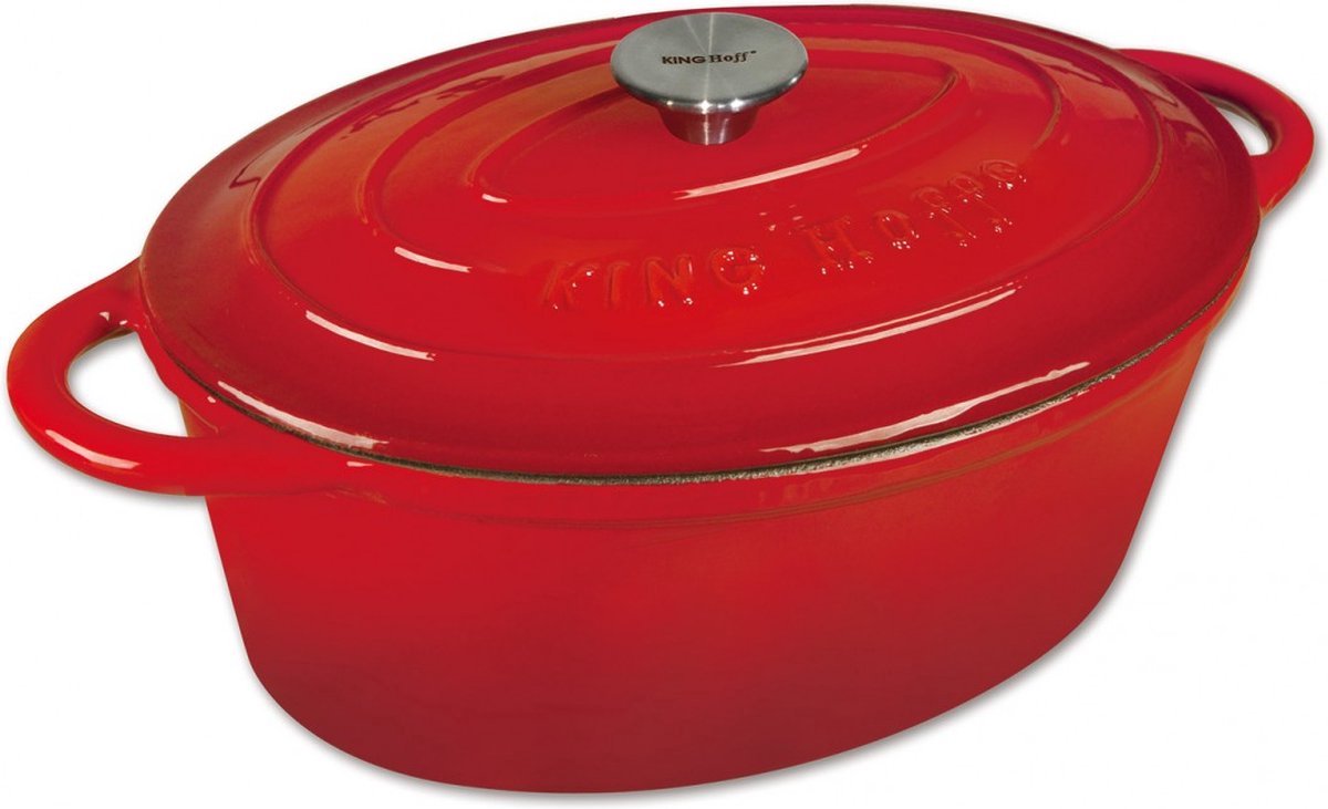 Kinghoff 1612 – gietijzeren braadpan – ovaal – 33cm – 6,2L – rood – emaille