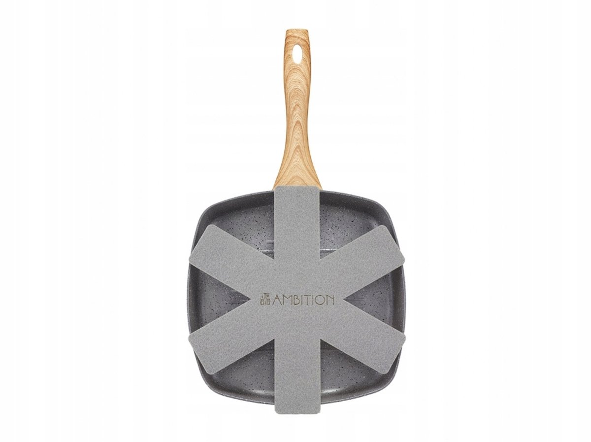 De Ambition Nordic grillpan met een afmeting van 26 x 26 cm is vervaardigd uit hoogwaardig aluminium en voorzien van een duurzame Qualum™ Basic Stone Edition anti-aanbaklaag. Deze tweelaagse coating biedt uitstekende antiaanbakeigenschappen en is zeer goed bestand tegen slijtage en krassen. Geïnspireerd door natuurlijke vormen en traditioneel koken op steen, voegt deze pan een stijlvolle, steenachtige look toe aan uw keuken.