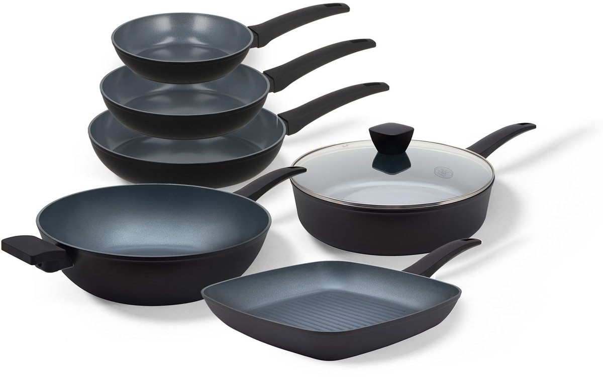 Gelijkmatige warmteverdeling Elke pan in deze set warmt snel en gelijkmatig op. Dat betekent: minder energieverbruik en altijd perfecte resultaten – of je nu een steak grilt of groenten roerbakt.
