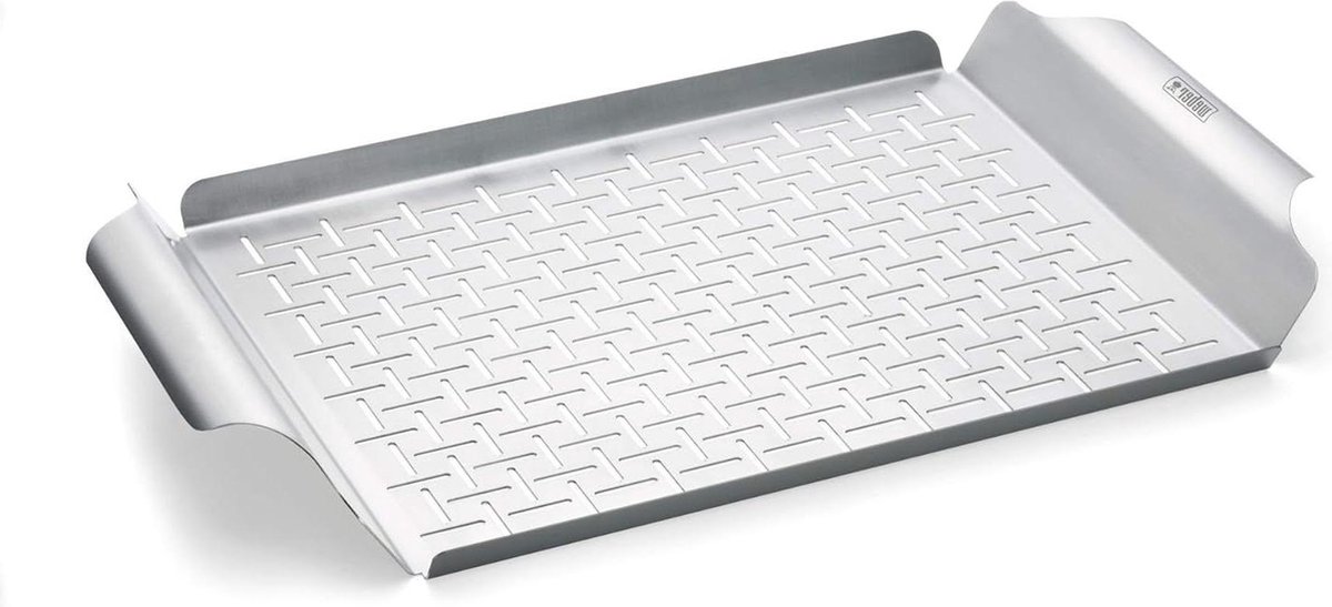 Deze roestvrijstalen grillpan is de perfecte accessoire voor de barbecue wanneer je garnalen, sint-jacobsschelpen en andere zeevruchten wilt bakken of groenten gaat sauteren. De pan is gemaakt van robuust roestvrij staal en reguleert de hitte zodat jouw gerechten gelijkmatig gegaard worden. De bodem en de zijkanten van de grillkorf hebben smalle openingen zodat de hitte naar boven kan en de sappen naar beneden kunnen sijpelen. Deze grillpan moedigt je aan om jouw favoriete gerechten een echte barbecue- en rooksmaak te geven.