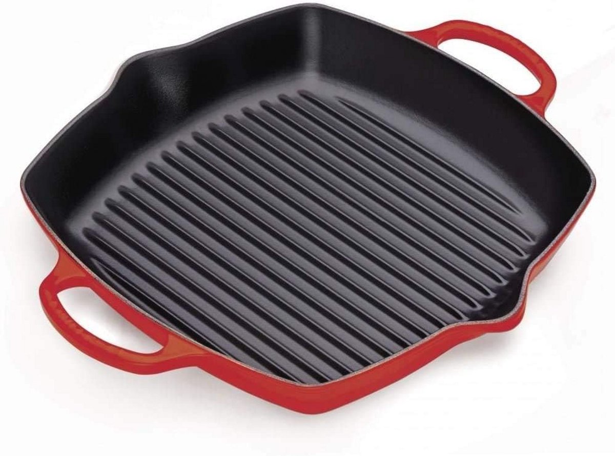 Diepe vierkante gietijzeren grillpan met hulpgreep – Voor alle soorten kookplaten en ovens