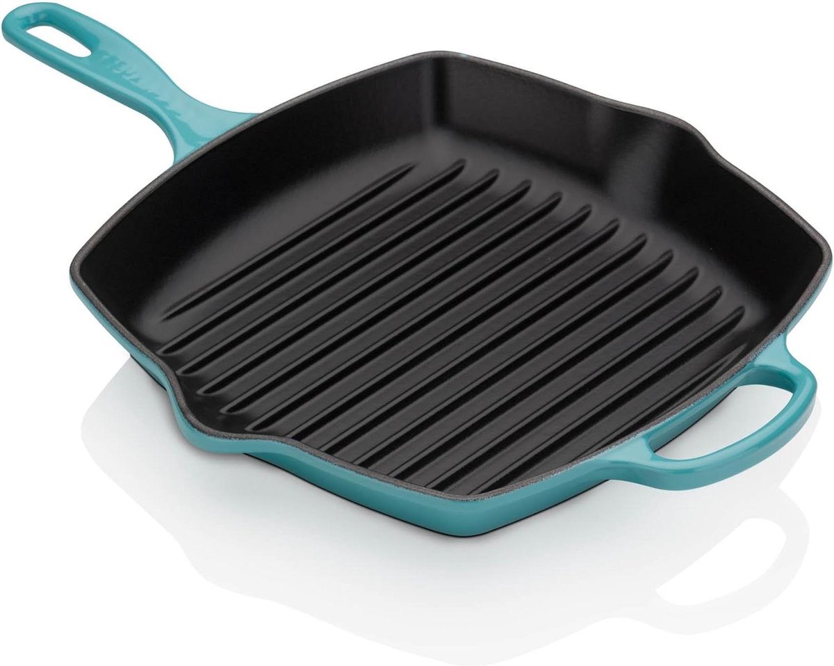Home Pannen Bakken Grillpannen Geëmailleerde gietijzeren grillpan met handgreep – Geschikt voor alle kookplaten – Ovenbestendig – 26 cm – Groenblauw Grilplaat