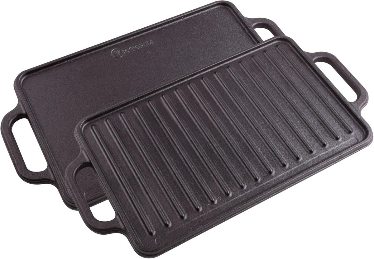 Geëmailleerde Gietijzeren Inductie Grillpan 33 X 21cm – Dubbelzijdig Bruikbaar voor Grill, Oven en Gas