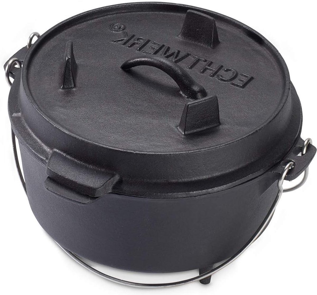 Gietijzeren BBQ kookpan ca. 49 l – Echtwerk Dutch Oven, reeds ingebrand, preseasoned – deksel met roestvrijstalen handvat – als grillpan te gebruiken – voor binnen en buiten – Small Edition zwart