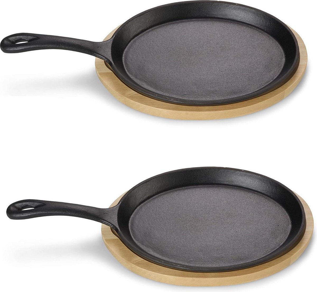 Gietijzeren kleine grillpan – al ingebrand – geschikt voor oven, grill, BBQ en inductie – ideaal voor serveren – 2-delig