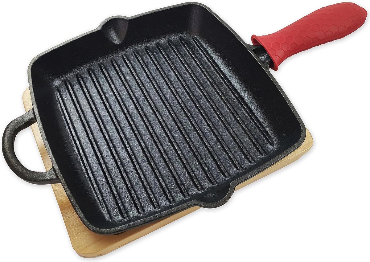 Gietijzeren pangrill (Ø 31 cm) incl. onderzetter & greepbescherming – grillpan gietijzeren pan – barbecue Gietijzeren pan – gasgrillpan