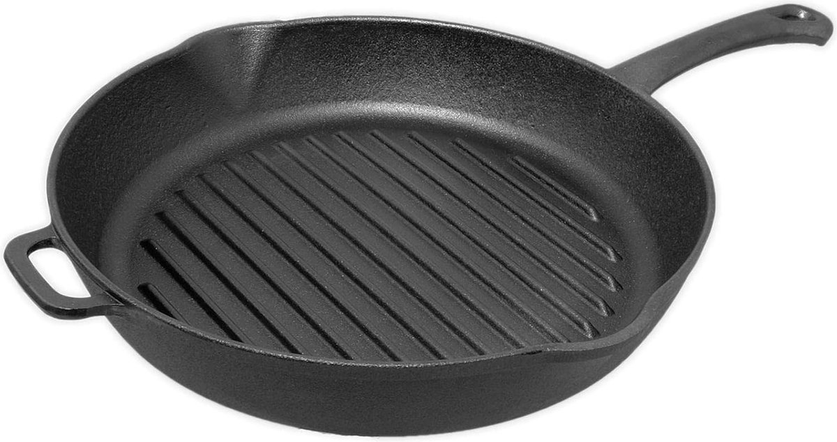 Goodivery ® Hoogwaardige Ronde Gietijzeren Grillpan voor Alle Kookplaten en Ovens, 25 cm, Mat Zwart