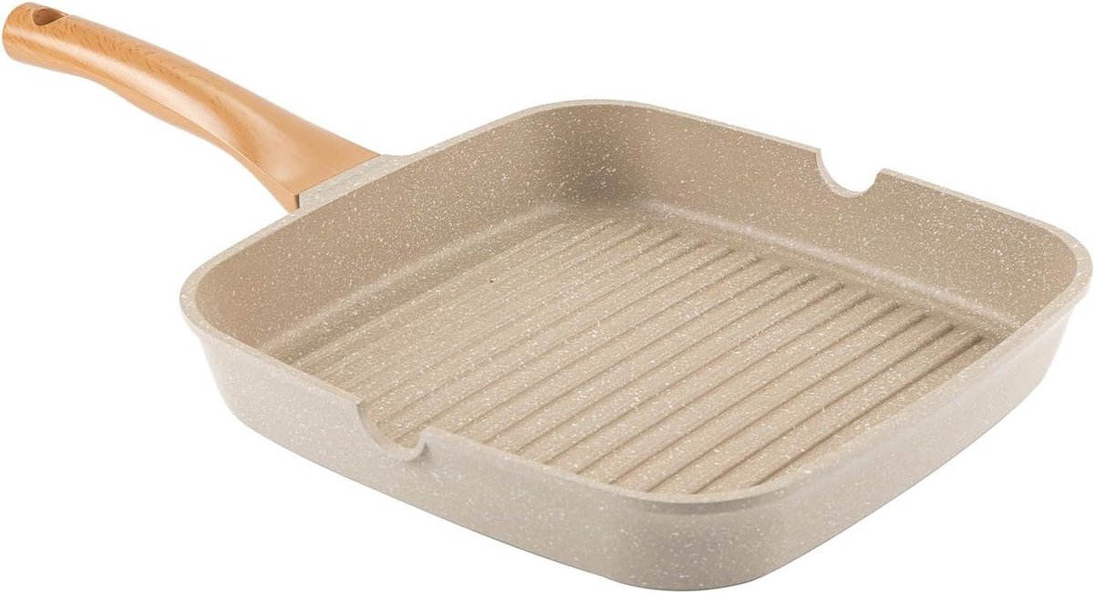 Grillpan 28 cm Diameter – Aluminium – Keramische Antiaanbaklaag – Ergonomisch Soft-Handvat – Geschikt voor Inductie Gas Elektrische Kookplaten