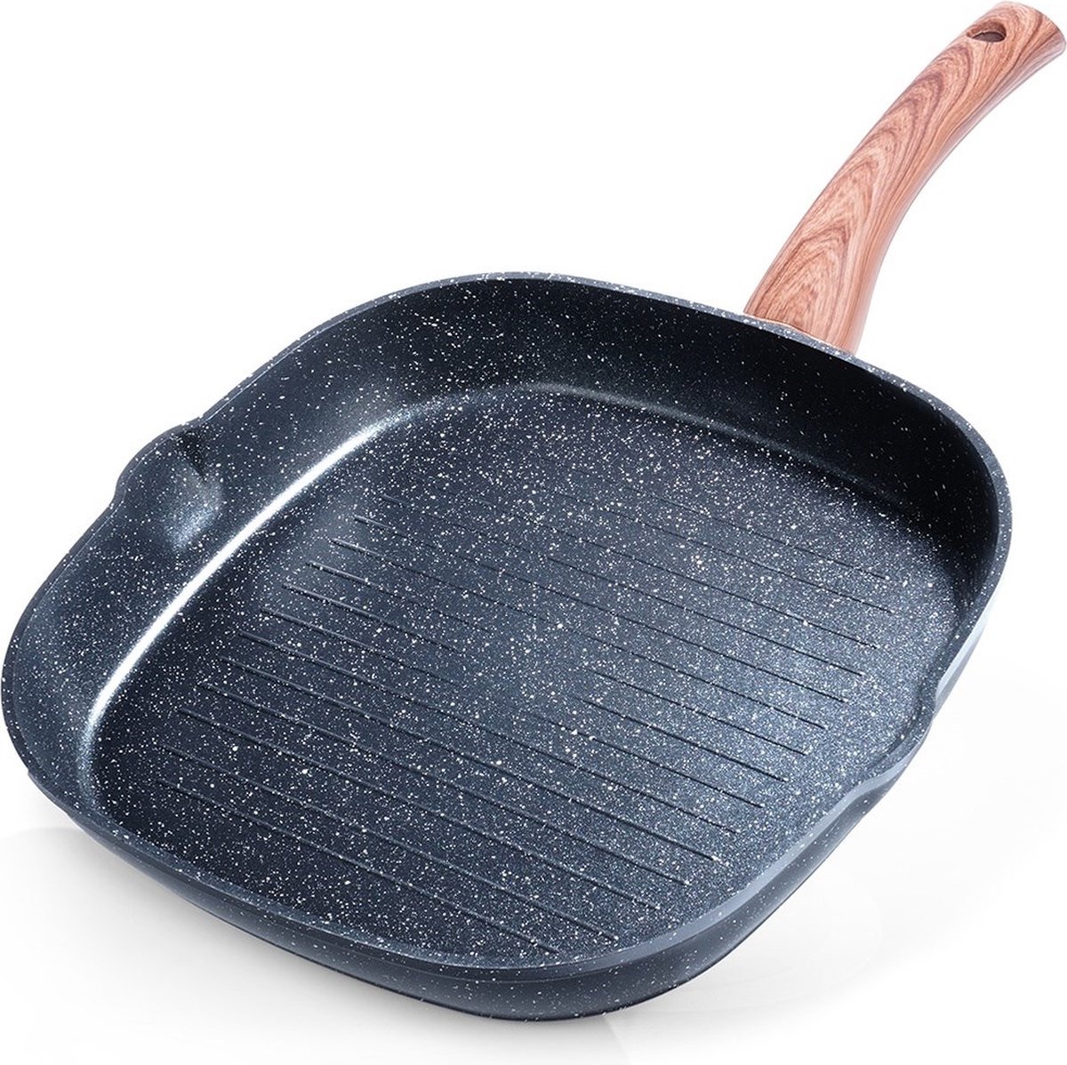 Grillpan Graniet Vierkant BLACK&WOOD 28×28 cm – Grill – Pan – Steakpan – Koekenpan