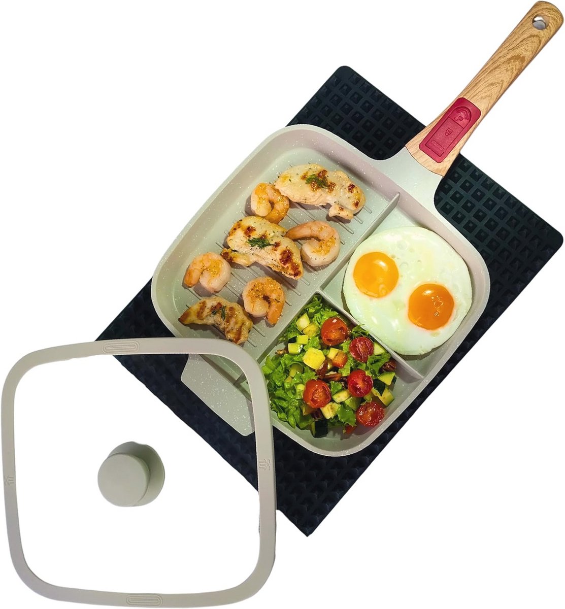 Grillpan met antiaanbaklaag en afneembare handgreep voor ontbijt, eieren, pannenkoeken en hamburgers - Kookstore.nl