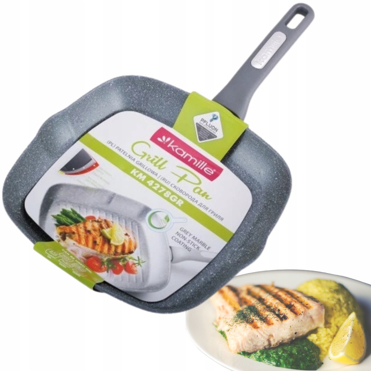 Deze hoogwaardige grillpan van Kamille, met een afmeting van 28×28 cm en een hoogte van 4 cm, is ideaal voor de moderne keuken. Dankzij de duurzame granieten antiaanbaklaag bakt niets aan, is de pan krasbestendig en veilig in gebruik. De pan is vervaardigd uit gegoten aluminium met dikke wanden en een bodem die snel opwarmt en warmte lang vasthoudt. Het ergonomische ‘Soft-touch’ handvat wordt niet heet en is gemakkelijk schoon te maken. Geschikt voor alle warmtebronnen, inclusief inductie.