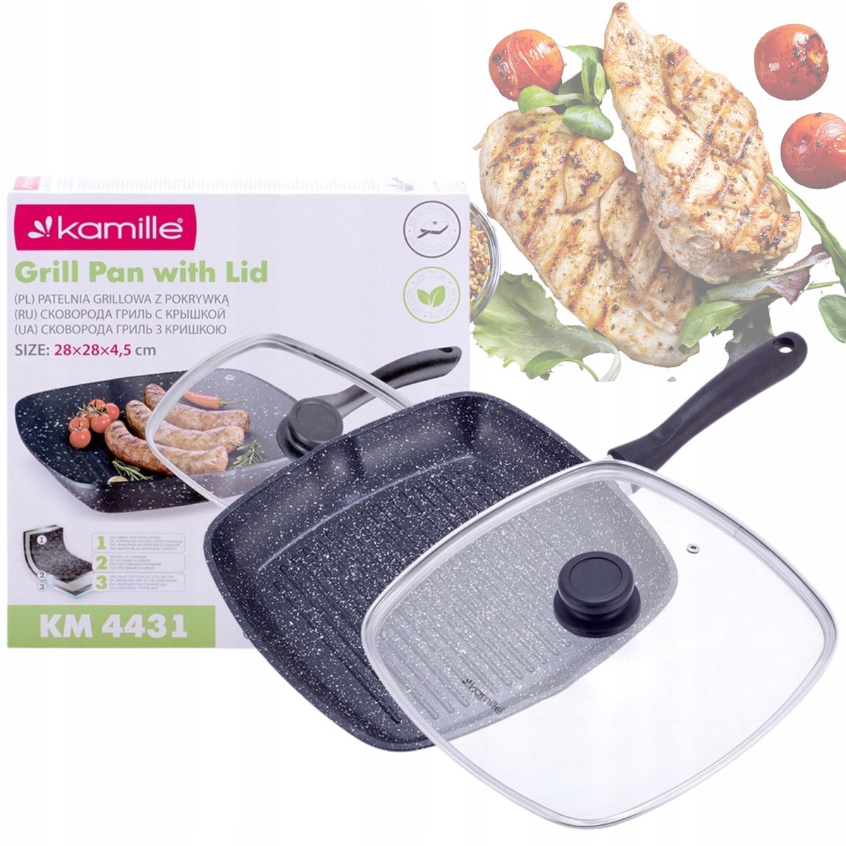 Grillpan met Marmercoating 28cm met Deksel – Geschikt voor Inductie