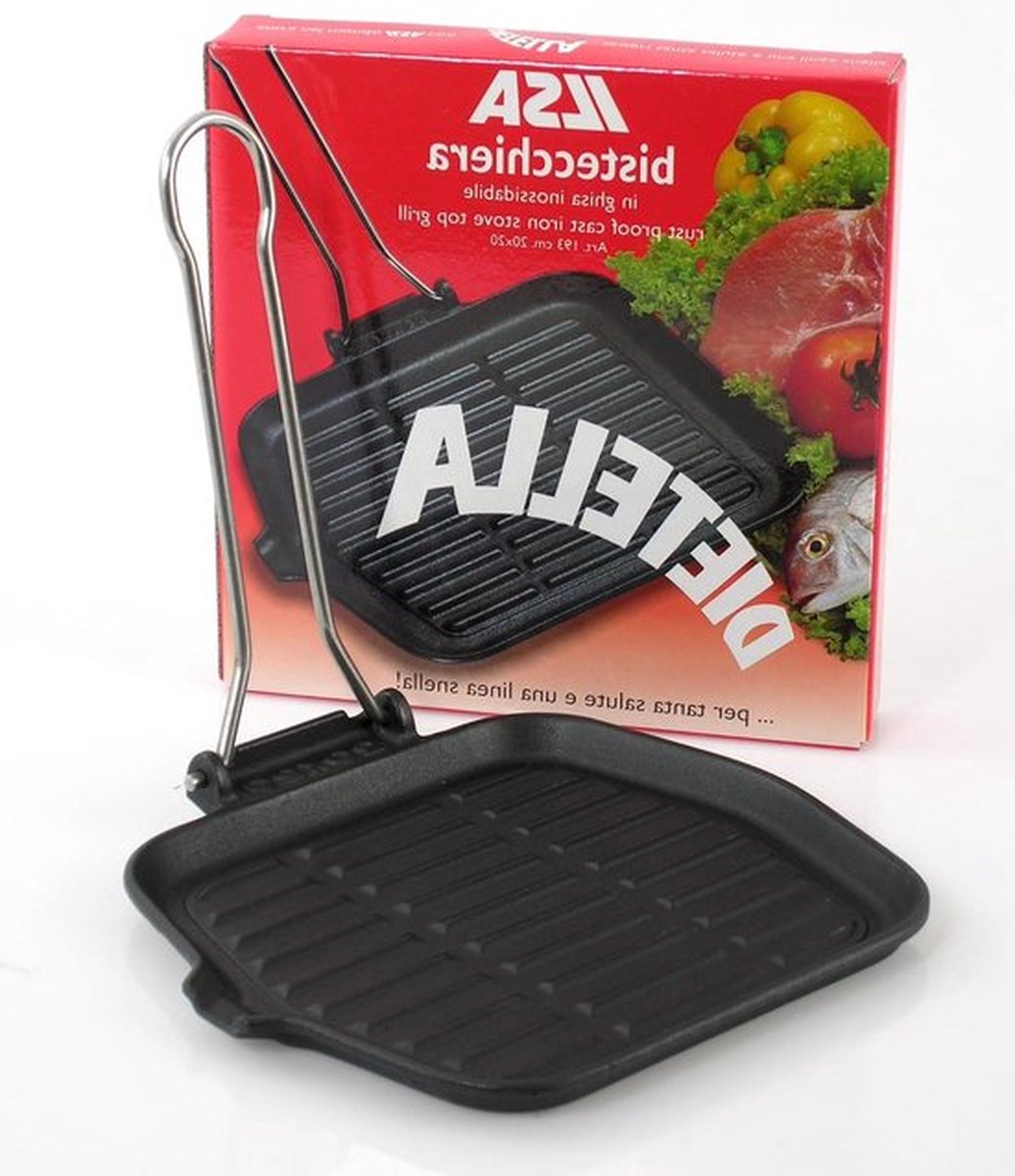 Grillpan van gietijzer-aluminium zwart 20 x 20 cm - Monodietella - Kookstore.nl