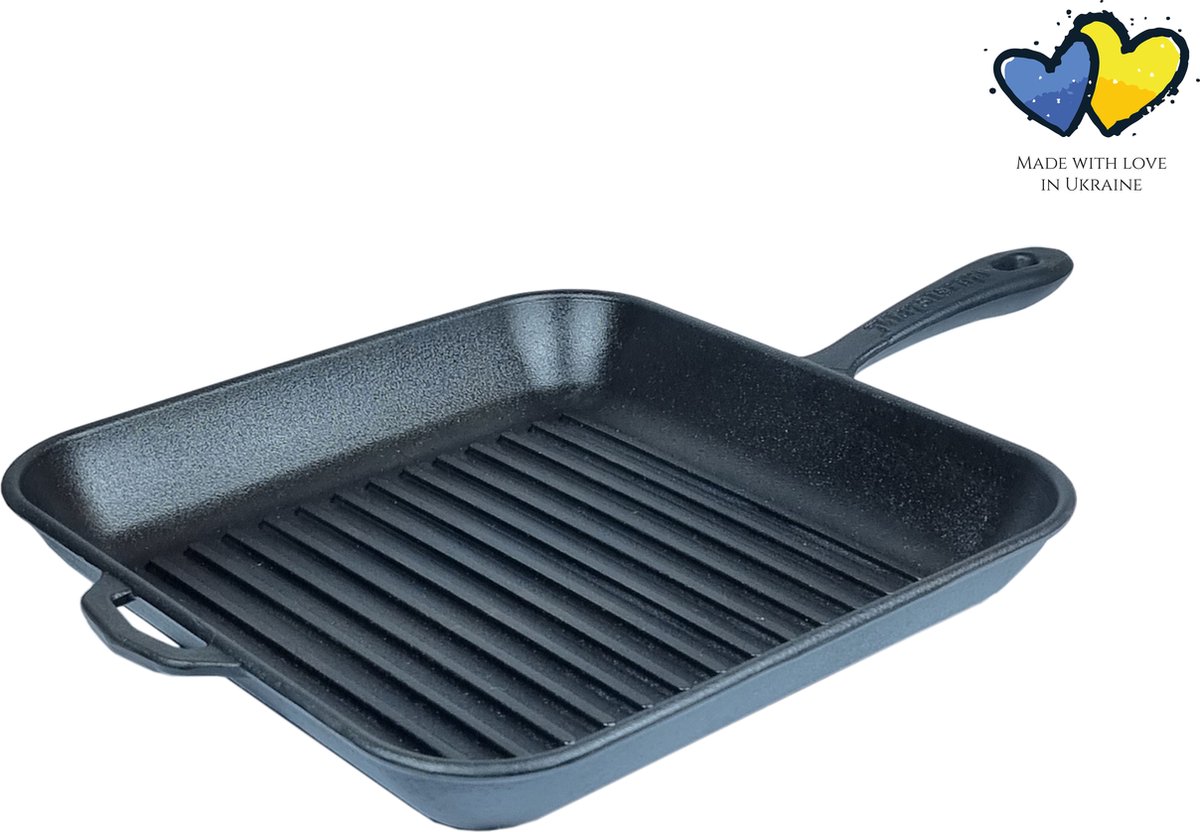 MAYSTERNYA Grillpan Gietijzer – 28 x 28 x 4 cm – Geschikt Voor Inductie – Steakpan – Grillen – Bakken – BBQ Accessoires – Koken – Grillplaat – Barbecue – Gietijzer – Pannenset – Barbecue Cadeau – Geschenk – Mat Zwart