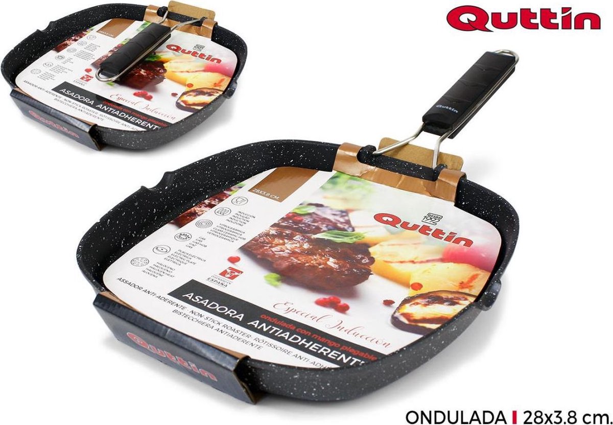 Quttin Grillpan - Gegoten aluminium - 28 x 28 x 3,8 cm - opvouwbaar handvat