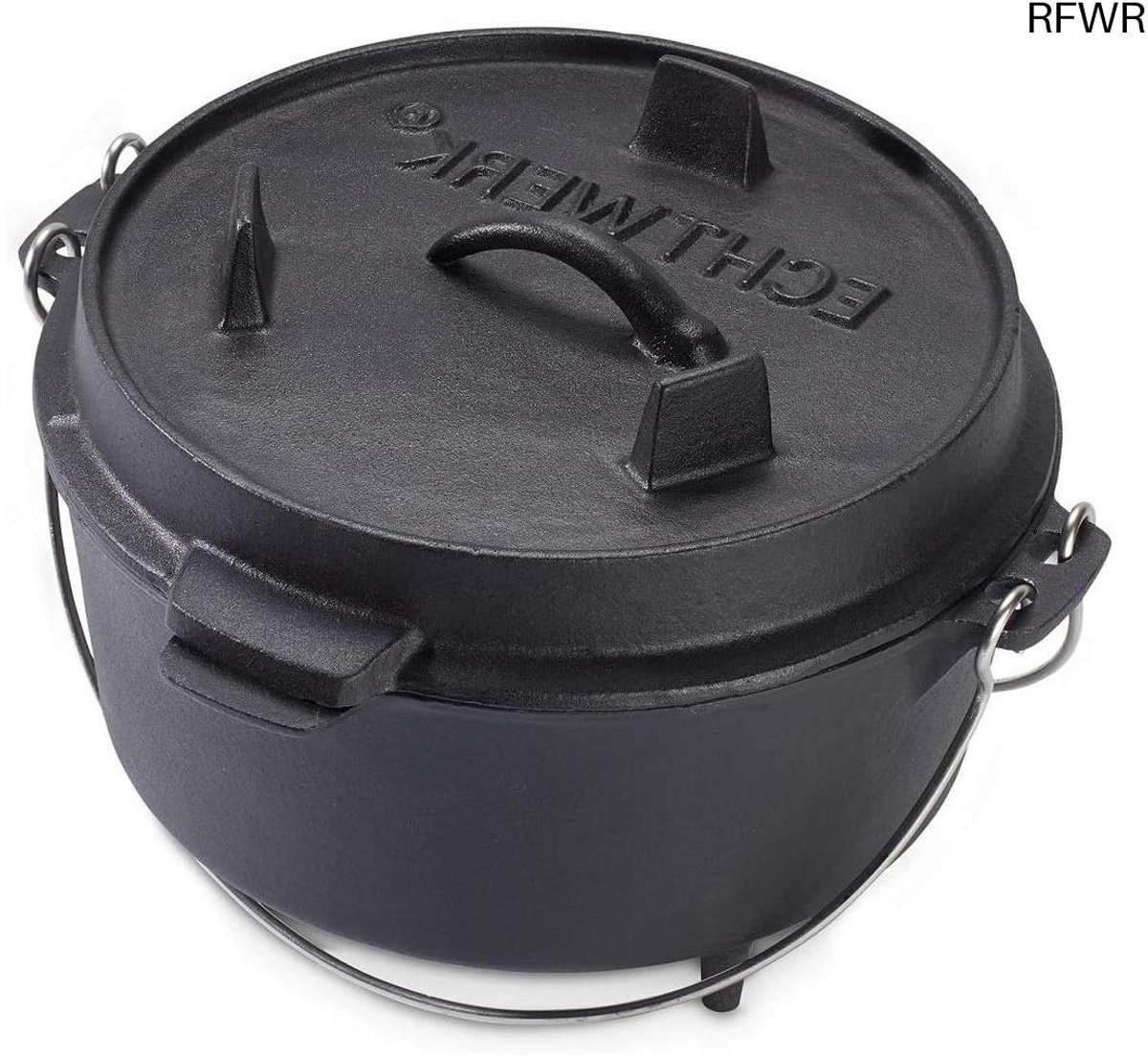 RFWR® Gietijzeren Dutch Oven 4,9 l - Preseasoned Kookpan met Deksel en Handvat - Grillpan voor Binnen en Buiten - Zwart