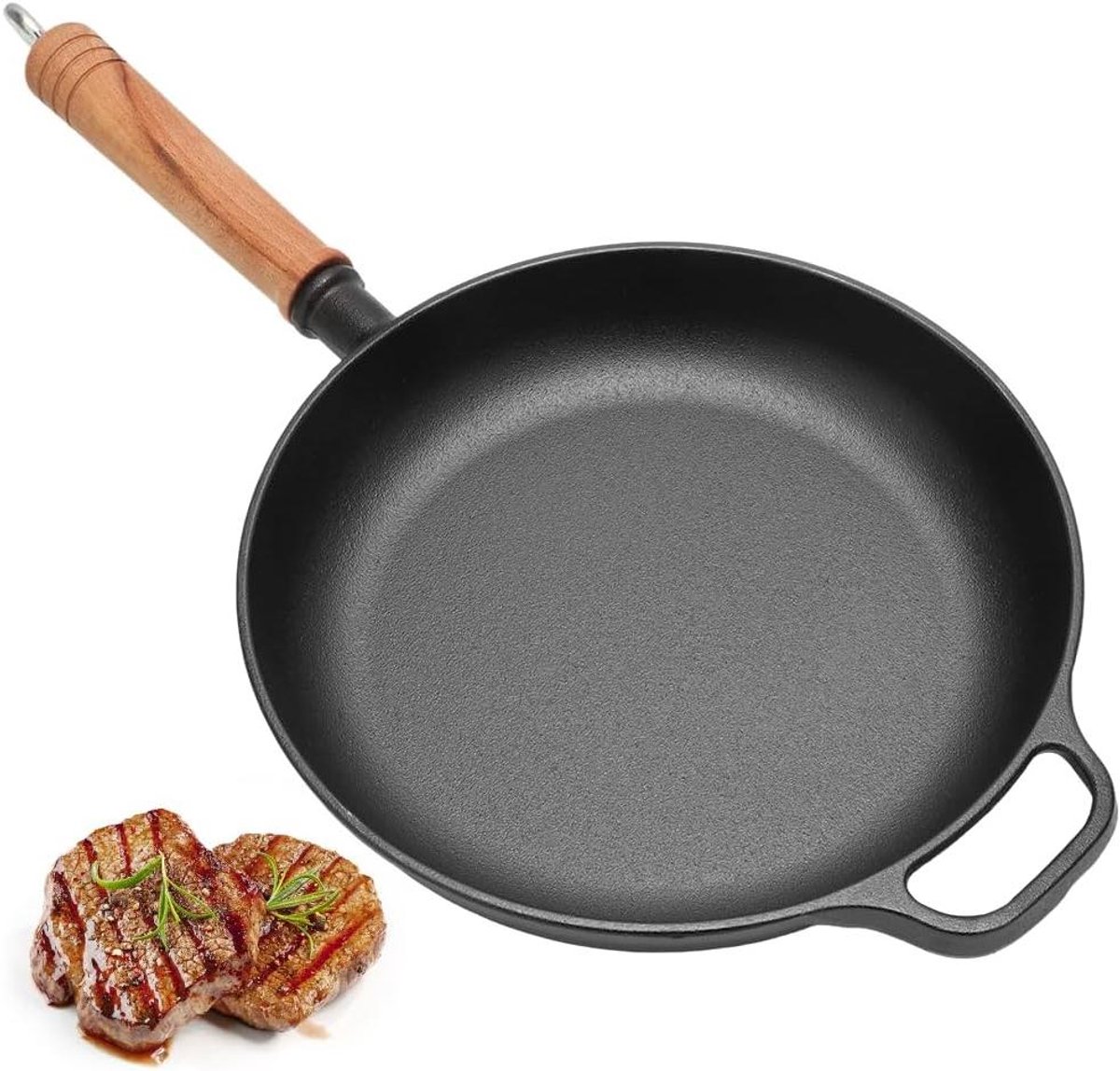 Thelau – – Gietijzeren braad- en grillpan met massief houten handvat – 27 cm – geschikt voor grill, gasgrill en oven