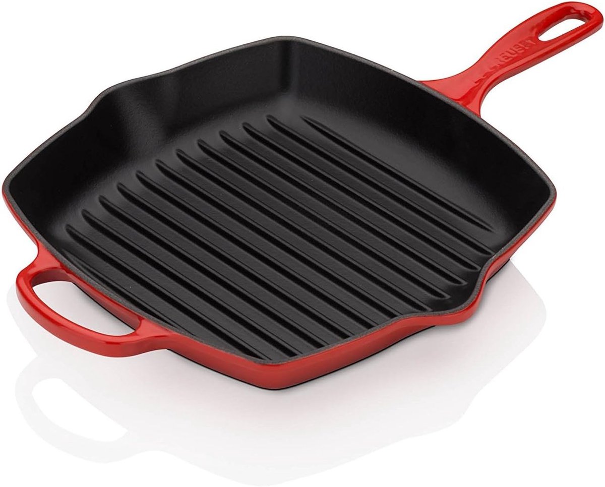 Ontdek onze vierkante gietijzeren grillpan van 26 cm perfect voor het krokant aanbraden en grillen van al je favoriete gerechten zoals kip steaks vis en groenten. De ribben zorgen voor optimale grillresultaten terwijl de matzwarte binnenemailering voor een uitstekende warmteverdeling zorgt. Deze grillpan is geschikt voor alle warmtebronnen inclusief inductie en oven. Dankzij de hoge ribben en de handige schenktuit giet je gemakkelijk overtollig vet af. Gemaakt in Frankrijk en met de hand te reinigen maar ook vaatwasmachinebestendig. Perfect voor de culinaire liefhebber!