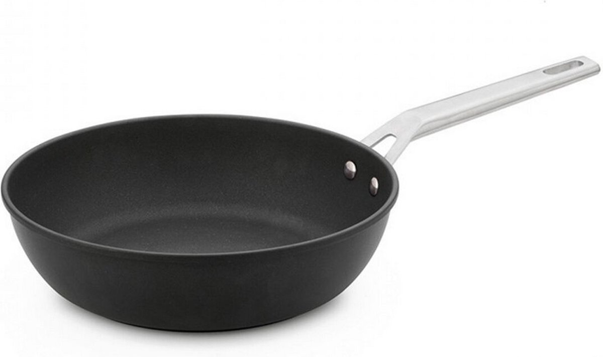 Gegoten aluminium hoge koekenpan met een diameter van 28 cm en een inhoud van 4 liter.