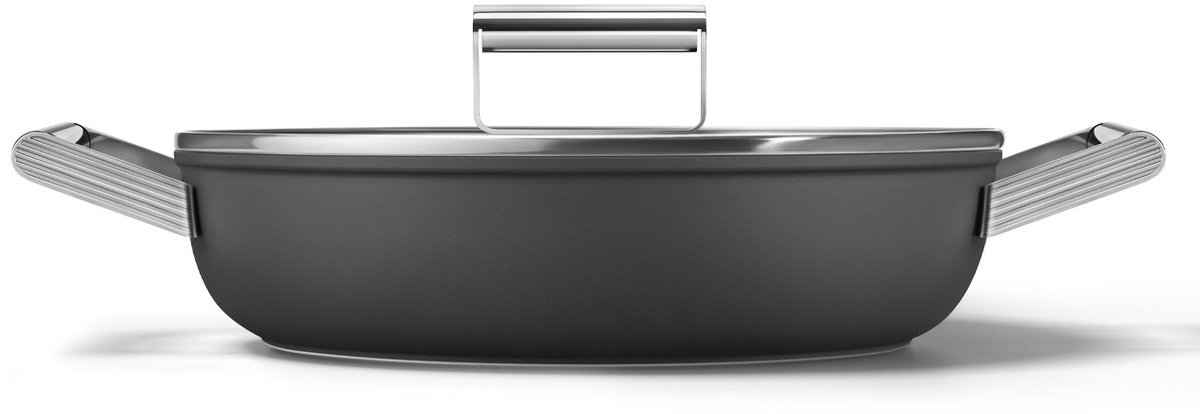 Breng stijl en functionaliteit naar je keuken met de SMEG DPF2812BLM diepe koekenpan in mat zwart. Deze pan uit de iconische Collezzione-serie combineert hoogwaardig Italiaans design met moderne prestaties. Dankzij de extra hoge rand is hij ideaal voor sauteren, wokken, sudderen of het bereiden van grotere gerechten. Een veelzijdige must-have voor wie gezond en met flair wil koken.