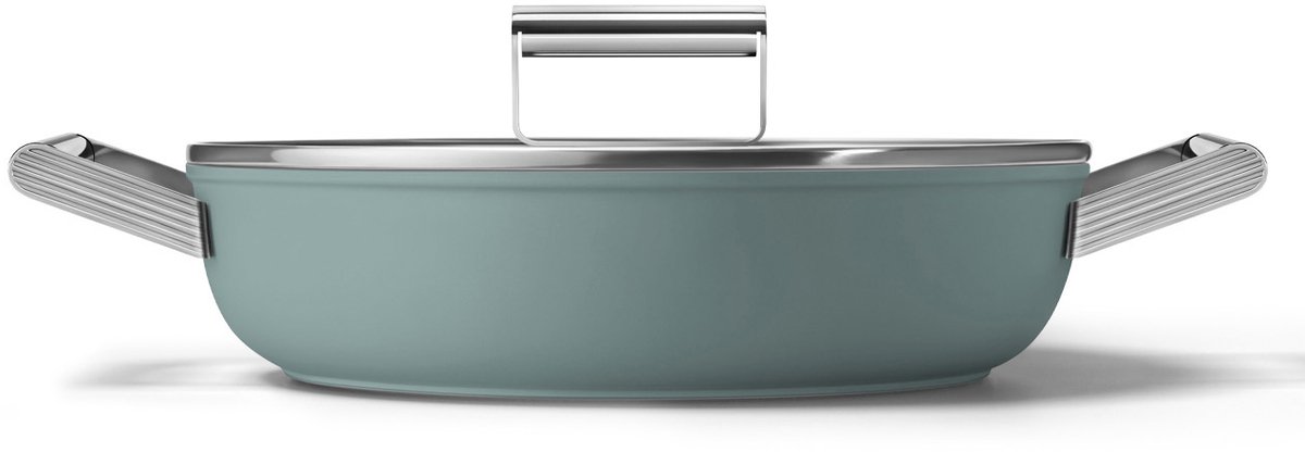 Geef je keuken een vleugje retro-charme met de SMEG DPF2812EGM diepe koekenpan in stijlvol emerald green. Deze veelzijdige pan uit de iconische Collezzione-serie combineert hoogwaardig Italiaans design met praktische functionaliteit. Dankzij de extra hoge rand is hij ideaal voor wokken, sauteren, sudderen of het bereiden van grotere gerechten. Perfect voor wie gezond koken wil combineren met een oogstrelend design.