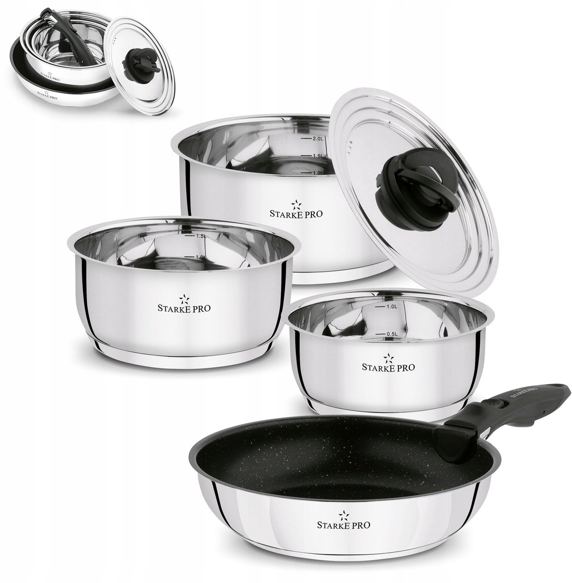 6-delige RVS Pannenset met Afneembaar Handvat & Koekenpan