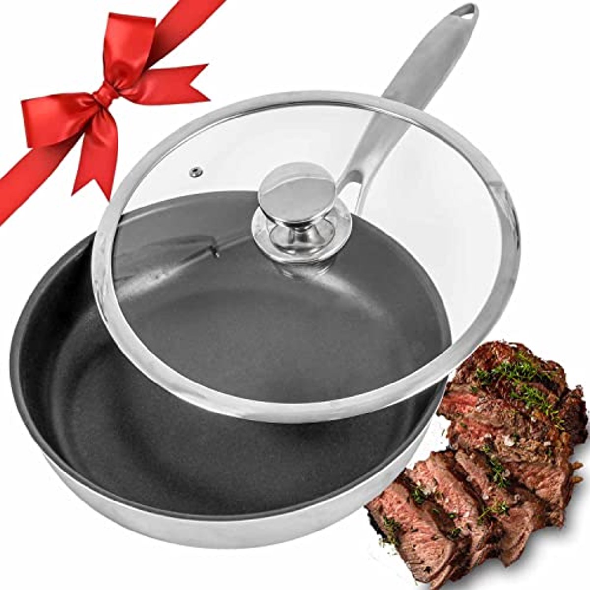 Anti-aanbak koekenpan met deksel - 10 inch roestvrijstalen niet-stick koekenpan voor inductie koken - Kookstore.nl