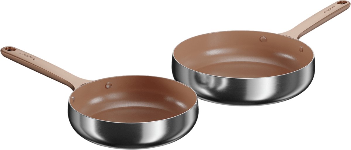 BergHOFF Home Koekenpannenset 2-delig RVS – Ø 20 / Ø 24 cm – Inductie Koekenpan RVS – Antikleefpan – PFAS & PTFE vrij – Inductie, Elektrisch, Keramisch & Gas – Keramische Anti-Aanbakpan – Warm Blush