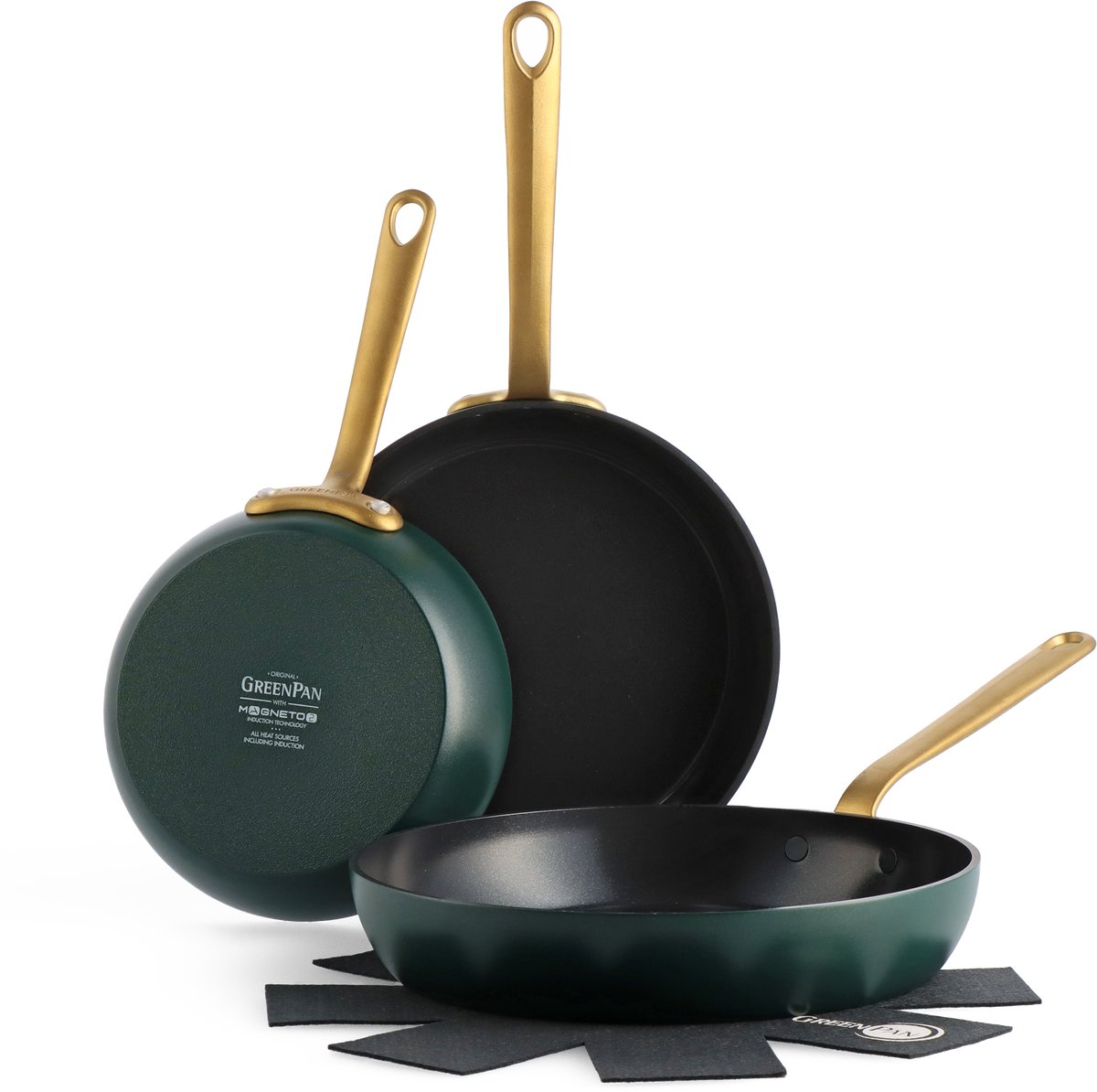 GreenPan Craft Keramische Antiaanbaklaag Koekenpannenset 2 delig -Ø20/24/28cm – PFAS-vrij – Inductie Koekenpan – Inductie pannenset – en Vaatwassergeschikt – Ovenbestendig tot 220° – Gehard Aluminium – RVS Handgrepen – Groter bakoppervlak – Groen