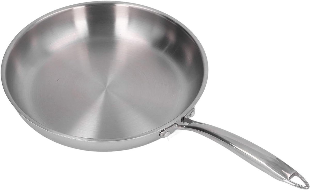 Deze koekenpan is gemaakt van roestvrij staal, wat een hoge hardheid en een lange levensduur garandeert. De pan heeft een stevige constructie die met klinknagels is bevestigd, waardoor een lange levensduur wordt gegarandeerd. Met zijn 3 lagen bodem verwarmt de pan snel en gelijkmatig, zorgt voor professionele warmteverdeling. Het ergonomische handvat biedt een comfortabele grip en optimale controle tijdens het koken. Deze koekenpan met antiaanbaklaag is geschikt voor het schroeien, het maken van roerei, het bakken van groenten, curry’s en nog veel meer.