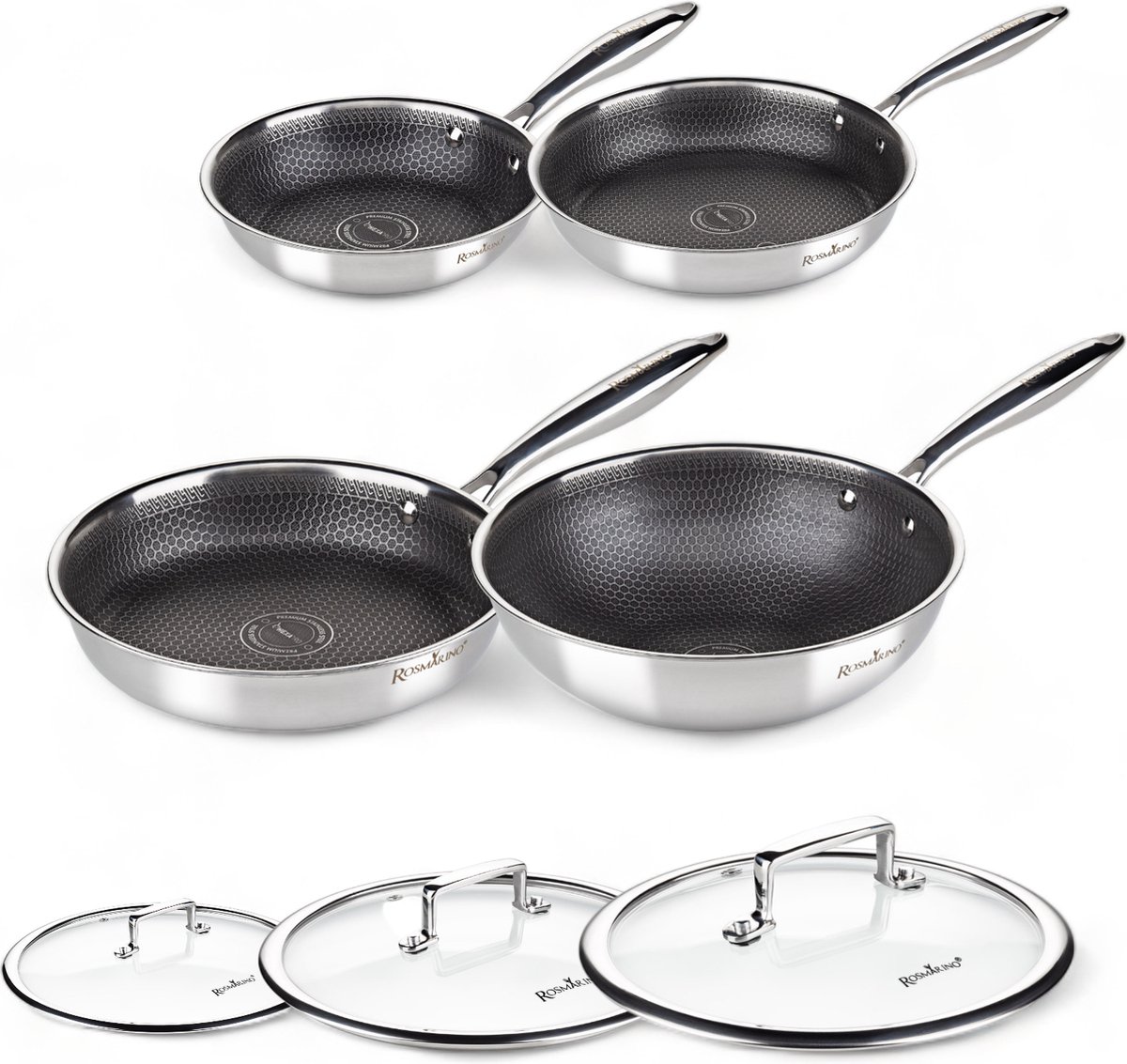Rosmarino HexaPRO Pannenset 7delig - Pannen - Koekenpan Inductie - RVS Koekenpan - Geschikt voor alle warmtebronnen - Kookstore.nl
