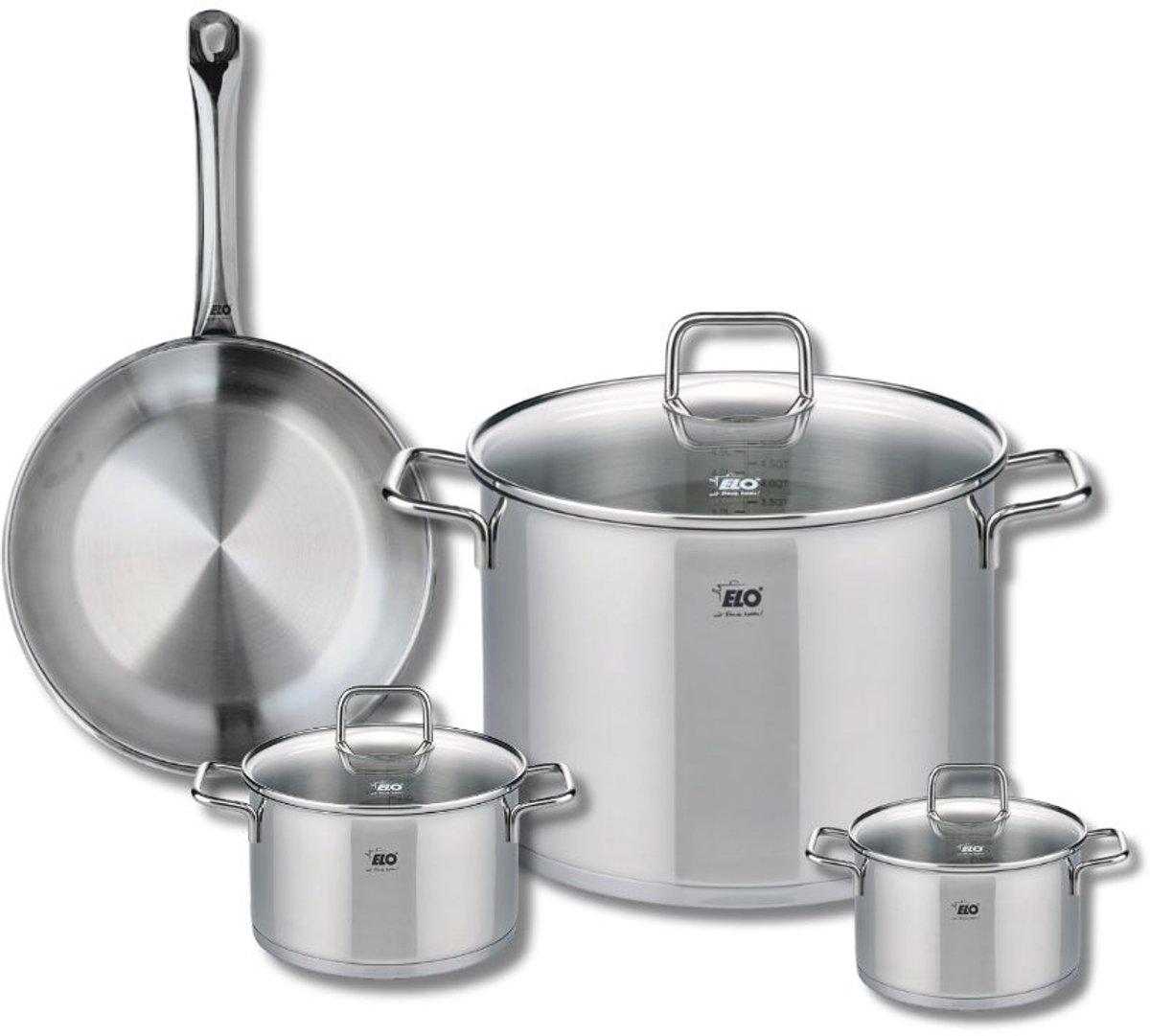 Ontdek de Elo Profi Citrin kookset, bestaande uit een koekenpan van 24 cm en drie steelpannen (12, 14 en 26 cm), ideaal om uw keuken uit te rusten met hoogwaardig kookgerei. Deze producten zijn gemaakt van robuust roestvrij staal en garanderen een uitstekende warmtegeleiding en duurzaamheid. Het ongecoate oppervlak zorgt voor gezond, PFAS-vrij koken en veilig gebruik. De koekenpan van 24 cm is perfect om te braden, braden of sauteren, terwijl de steelpannen in verschillende maten geschikt zijn voor al uw recepten, of u nu smaakvolle gerechten wilt laten sudderen, soepen wilt bereiden of groenten wilt koken. Dankzij de compatibiliteit met alle soorten kookplaten, inclusief inductie, integreert dit kookgerei gemakkelijk in elke moderne keuken. De ergonomische handgrepen zorgen voor een comfortabele en veilige grip, waardoor ze gemakkelijk te hanteren zijn. Bovendien is het roestvrijstalen oppervlak, dat bestand is tegen vlekken en corrosie, eenvoudig schoon te maken. Kies voor deze Elo Profi Citrin set en geniet van een optimale culinaire ervaring die prestaties en elegantie combineert. Verander elke maaltijd in een moment van culinair genot met kookgerei dat functionaliteit en esthetiek combineert.