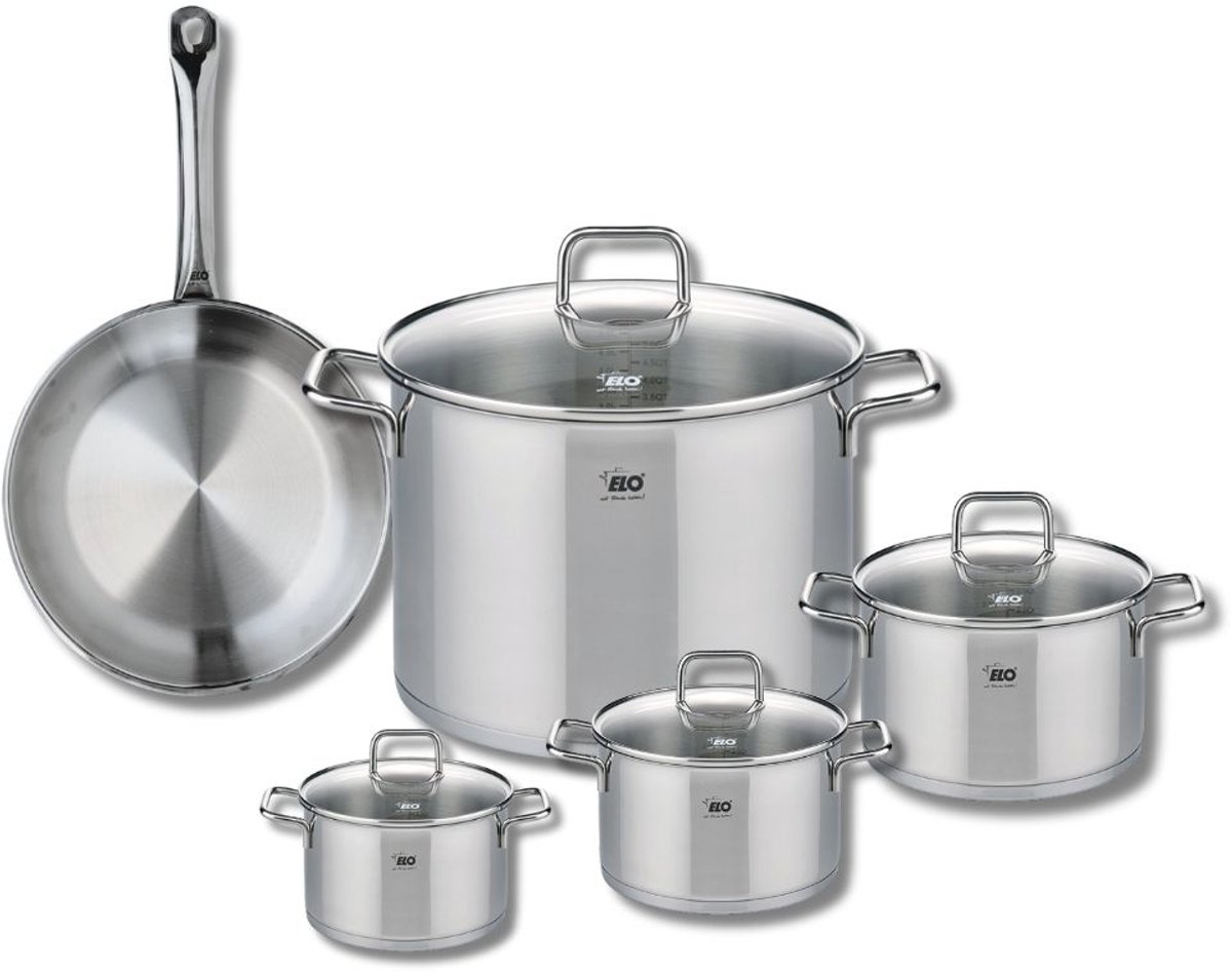 Ontdek de Elo Profi Citrin kookset, een roestvrijstalen kookset die robuustheid en prestaties combineert. Deze set bestaat uit een koekenpan van 24 cm en vier steelpannen in verschillende maten: 12, 14, 16 en 26 cm. Perfect voor al uw culinaire behoeften, deze set is ideaal voor het bereiden van een breed scala aan gerechten, van delicate sauzen tot stevige stoofschotels. De koekenpan is ontworpen voor een gelijkmatige warmteverdeling, wat perfect gaar eten garandeert. De steelpannen zijn ideaal voor slowcooking en sauzen, zodat u uw recepten perfect kunt laten sudderen. Al deze kookgerei is geschikt voor alle soorten kookplaten, inclusief inductie, en biedt flexibiliteit in gebruik. Gemaakt van ongecoat roestvrij staal, zijn deze producten niet alleen krasbestendig maar ook PFAS-vrij, wat zorgt voor gezond koken. Hun elegante en moderne design past perfect in uw keuken. Deze kookgerei is gemakkelijk schoon te maken en mag in de vaatwasser, wat uw dagelijks leven gemakkelijker maakt. Kies voor deze Elo Profi Citrin set en breng uw kookkunsten naar een hoger niveau, terwijl u geniet van de duurzaamheid en prestaties van elk onderdeel.