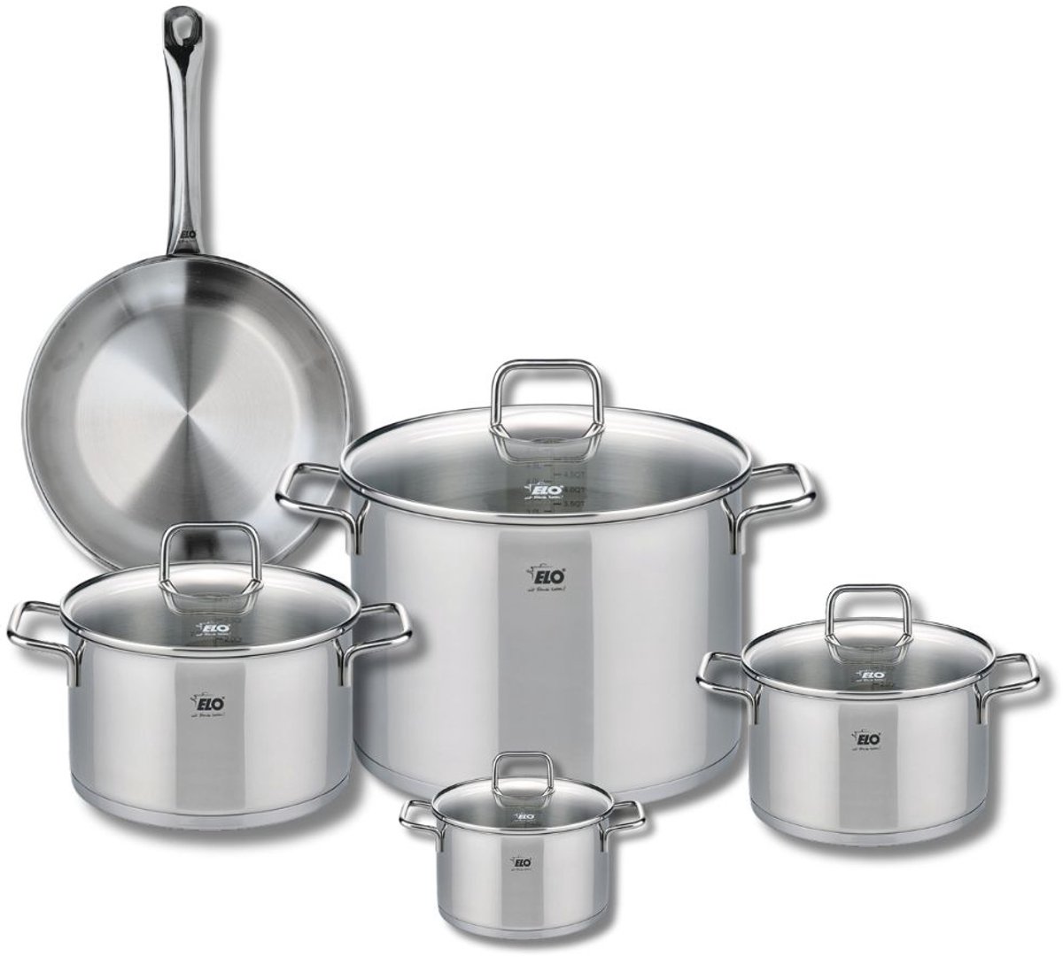 Set van 1 x 24cm koekenpan en 4 x steelpannen (12, 16, 20 en 26cm) Elo Profi Citrin