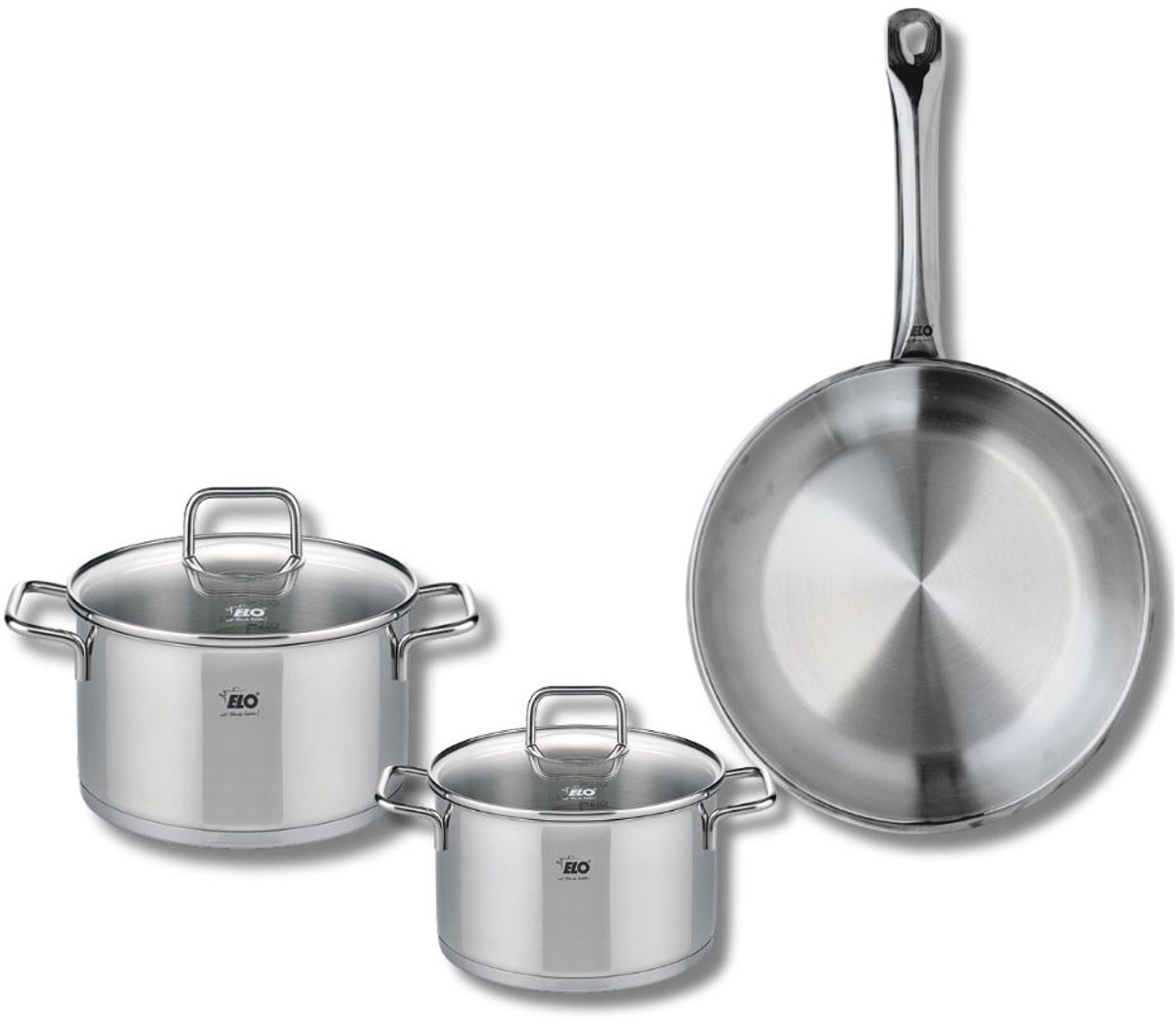 Set van 1 x 28cm koekenpan en 2 x 16cm en 20cm steelpannen Elo Profi Citrin
