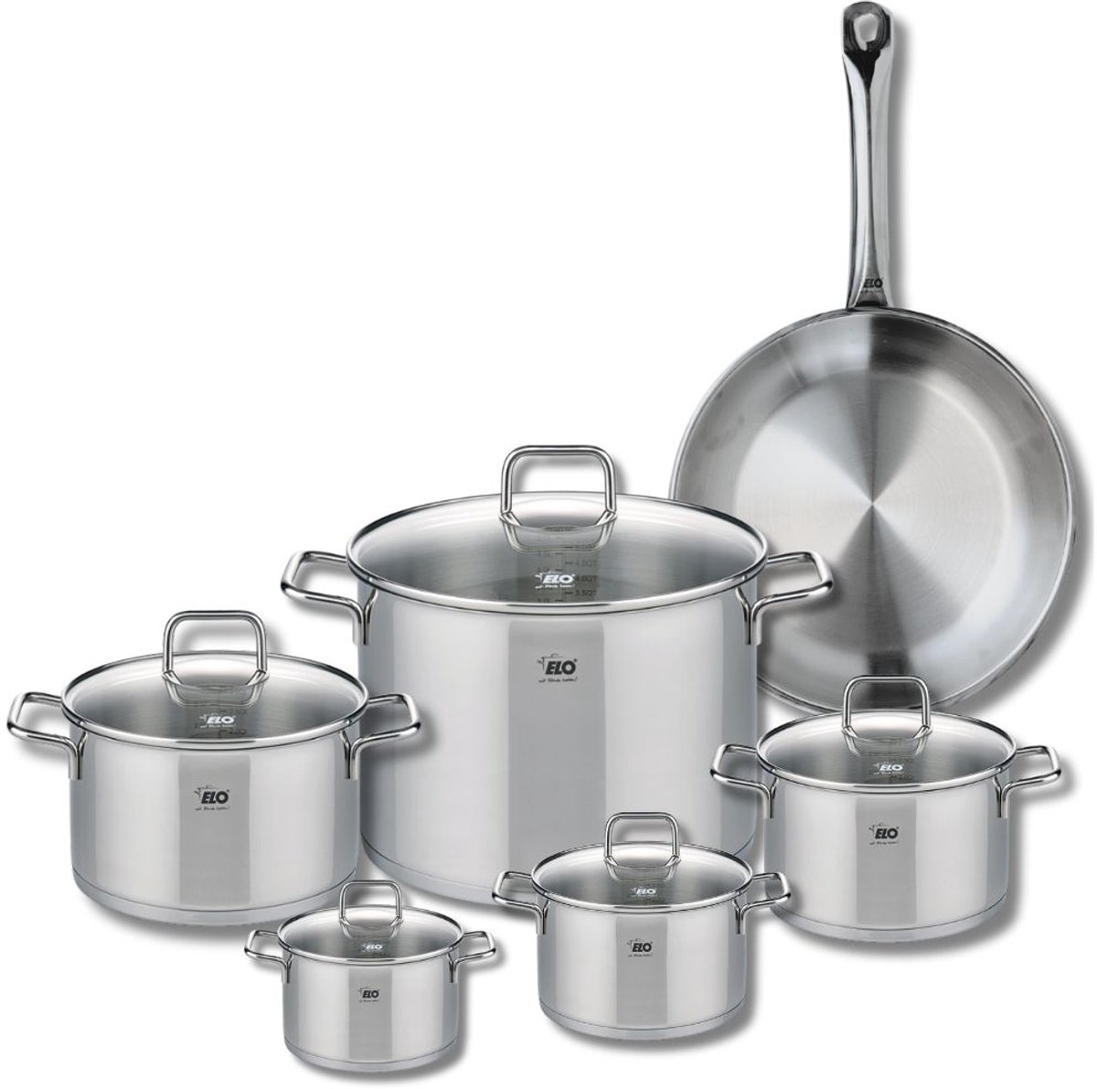 Set van 1 x 28cm koekenpan en 5 x steelpannen (12, 14, 16, 20 en 26cm) Elo Profi Citrin