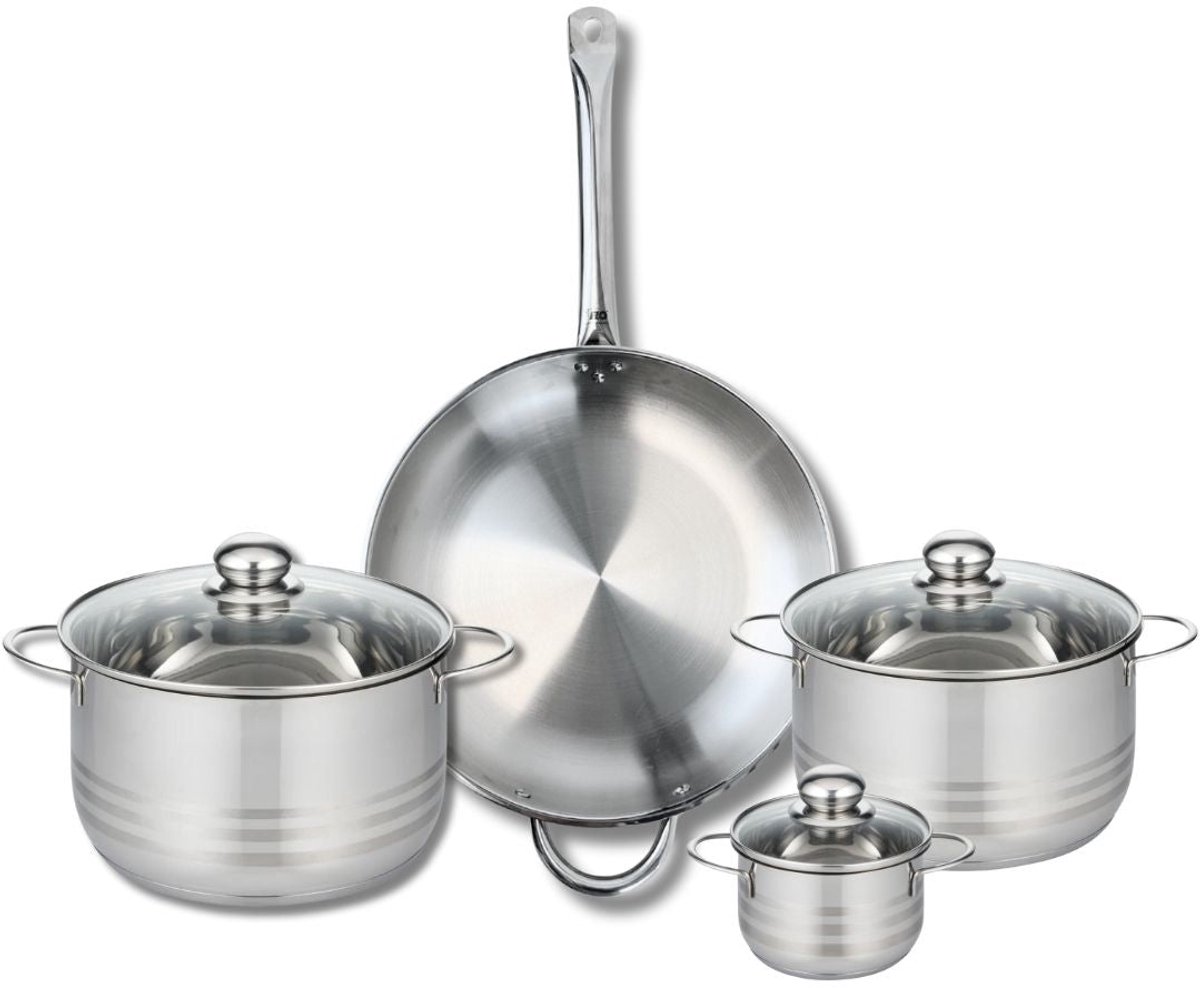 Ontdek de Elo Profi Brillant kookset, bestaande uit een koekenpan van 32 cm en drie steelpannen van 12 cm, 20 cm en 24 cm. Deze kookpannen zijn gemaakt van hoogwaardig roestvrij staal en zijn ideaal voor al uw culinaire behoeften, of u nu wilt sauteren, sudderen of stomen. Dankzij de roestvrijstalen constructie garanderen ze een uitstekende warmteverdeling, waardoor uw gerechten gelijkmatig garen. De koekenpan van 32 cm is perfect voor het dichtschroeien van vlees en groenten, terwijl de steelpannen in verschillende maten flexibiliteit bieden voor het bereiden van diverse recepten, van soepen tot stoofschotels. Hun robuuste constructie zorgt voor zorgeloos dagelijks gebruik en hun compatibiliteit met alle soorten kookplaten, inclusief inductie, maakt ze een praktische keuze voor elke keuken. Alle producten in deze set zijn ongecoat, wat krasbestendigheid en verhoogde duurzaamheid garandeert. Bovendien zijn ze PFAS-vrij, zodat u met een gerust hart kunt koken. Of je nu een hobbykok bent of een doorgewinterde chef-kok, deze kookset is je partner in al je culinaire creaties en combineert prestaties met onderhoudsgemak. Transformeer je kookervaring met deze essentiële set die elegantie en functionaliteit combineert.