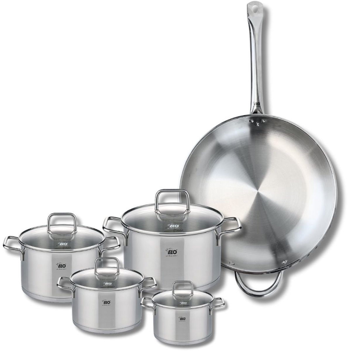 Set van 1 x 32cm koekenpan en 4 x steelpannen (12, 14, 16 en 20cm) Elo Profi Citrin