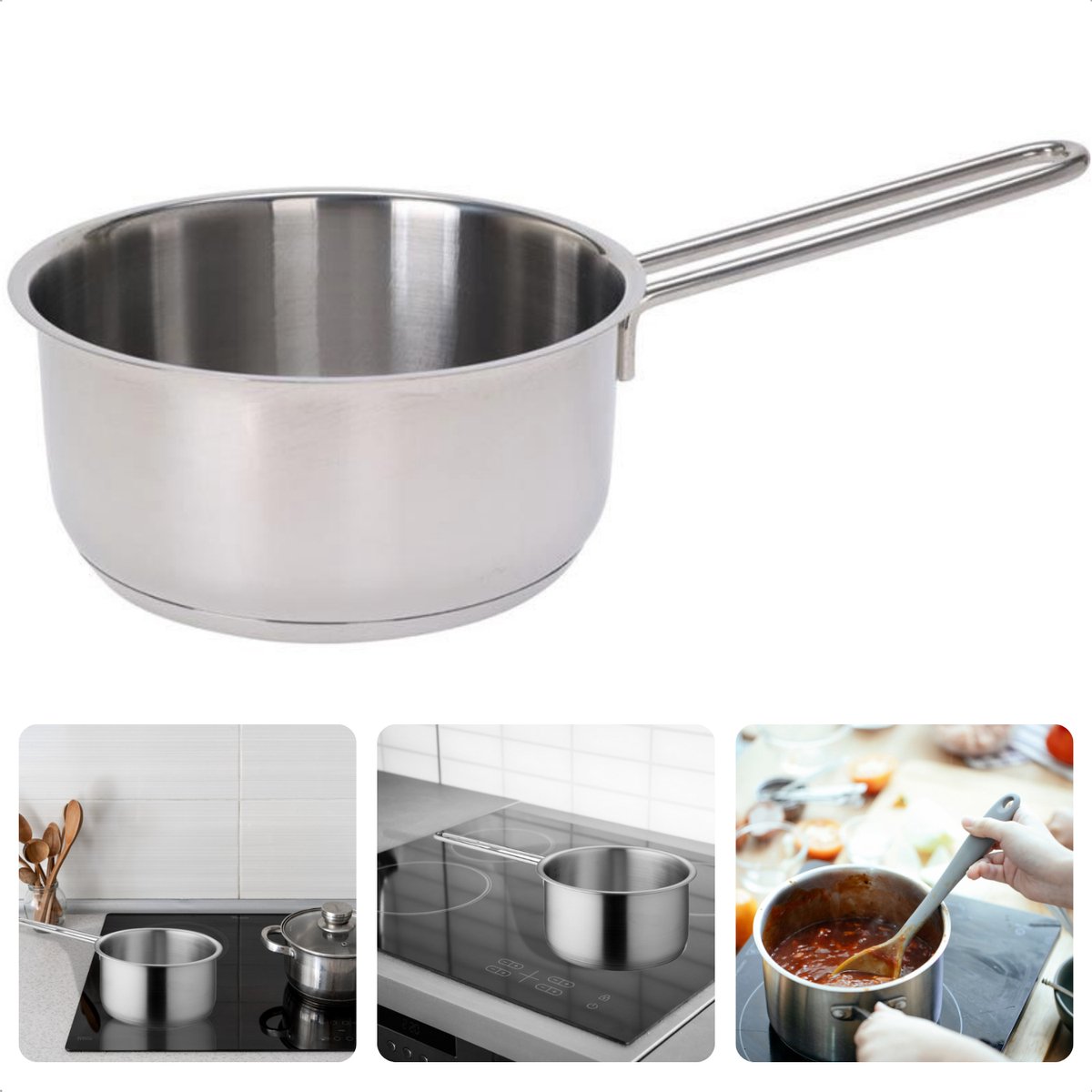 Deze sauspan is gemaakt van hoogwaardig roestvrij staal (RVS). Dit zorgt niet alleen voor een strakke en moderne uitstraling, maar ook voor duurzaamheid en robuustheid. Met een diameter van 16 cm en een hoogte van 8 cm is deze pan perfect geschikt voor het bereiden van sauzen, maar ook voor het verwarmen van melk of het smelten van boter.