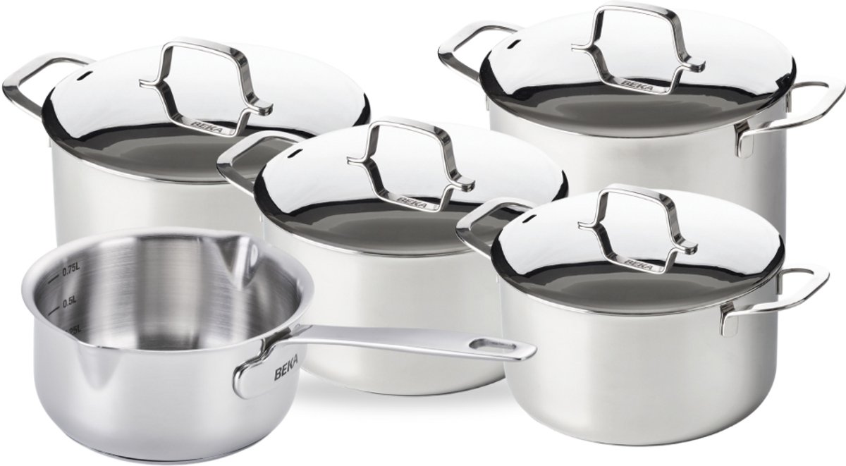 Beka Pannenset Maestro 5-Delig – zonder anti-aanbaklaag – geschikt voor alle warmtebronnen (Kookpannen, Steelpan & Soeppan)