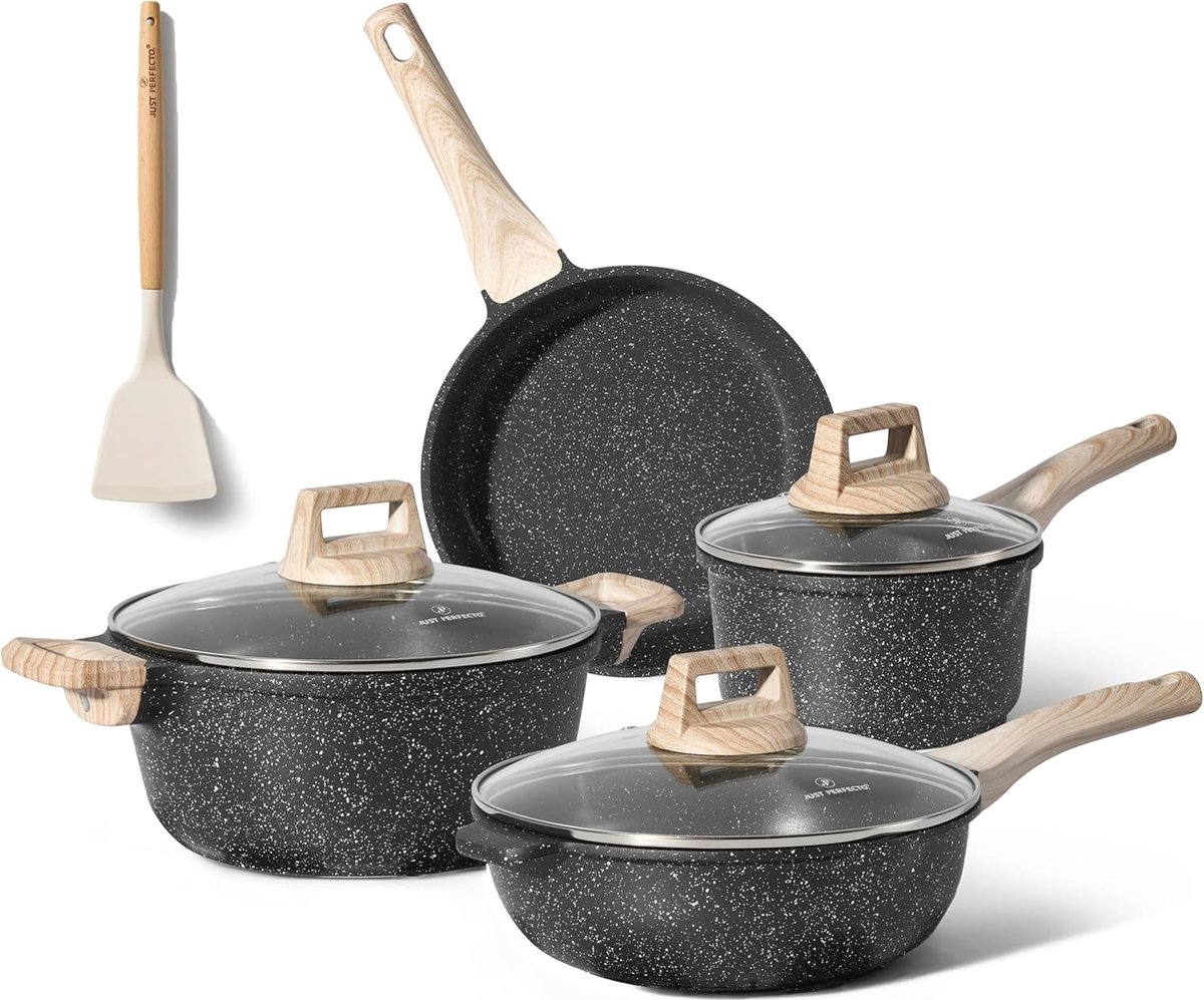 8 Delige Pannenset Inductie – Compleet Set Met Koekenpan, Wokpan, Braadpan, En Steelpan – Geschikt Voor Alle Waarmtebronnen