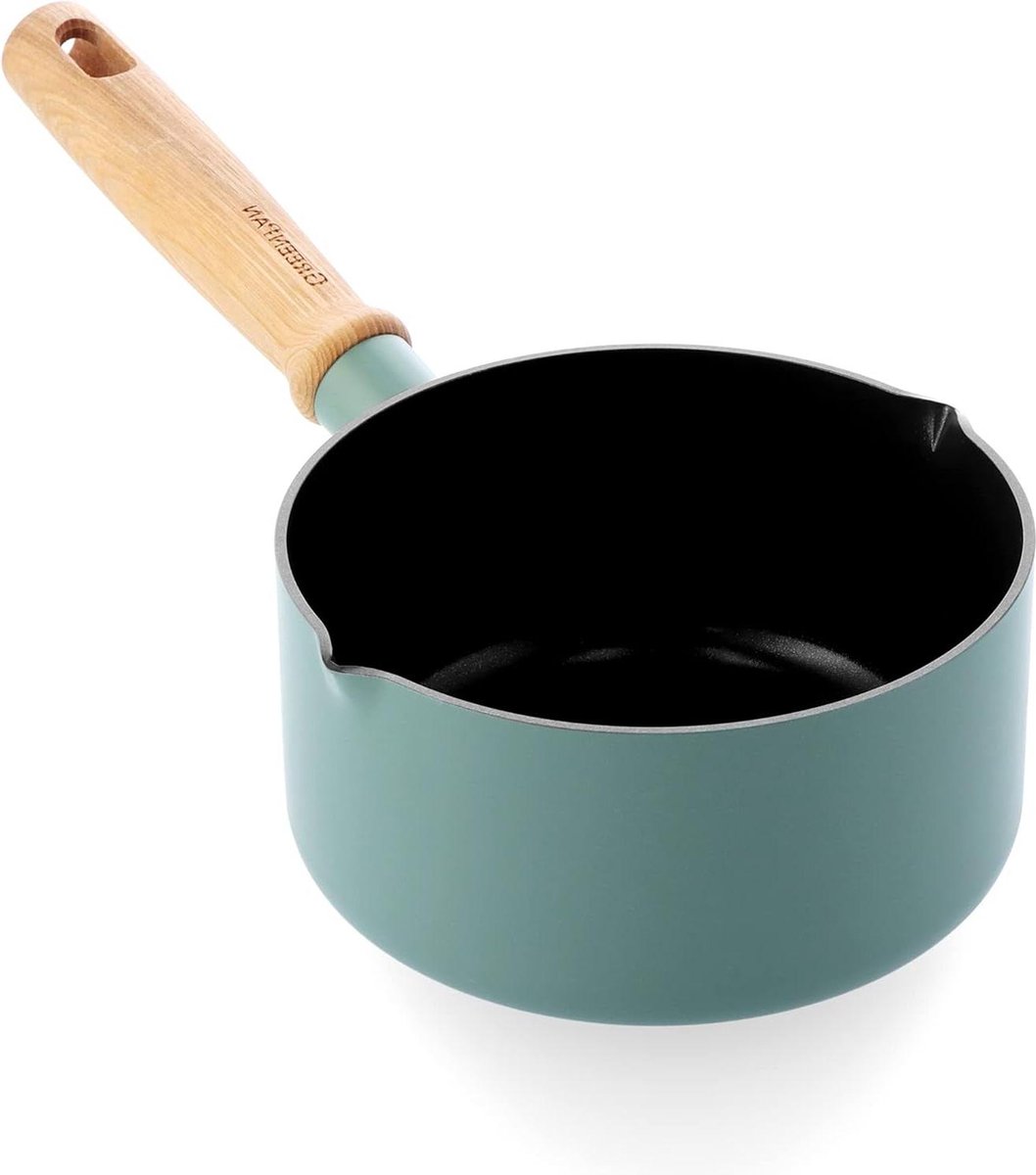 Gezonde keramische anti-aanbak steelpan – 16 cm/16l – Hout geïnspireerde handgreep – PFAS-vrij – Inductiegeschikt – Blauw