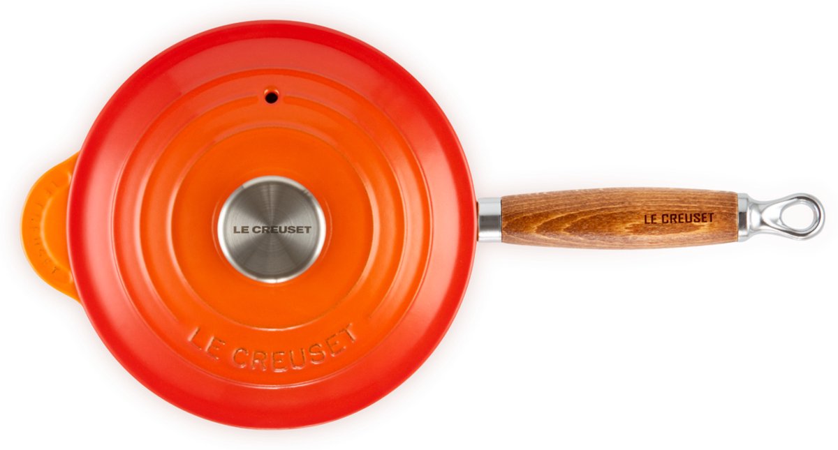 Deze Le Creuset Steelpan in het oranjerood is handig voor gerechten die wat meer aandacht nodig hebben. De steelpan heeft een diameter van 18 centimeter en een inhoud van 1.8 liter. Hij is vervaardigd uit geëmailleerd gietijzer wat de warmte vasthoud, zodat het eten gelijkmatig warm wordt. De deksel is voorzien van een ventilatiesysteem om oververhitting te voorkomen en door de handige schenkrand kun je zonder te knoeien serveren.