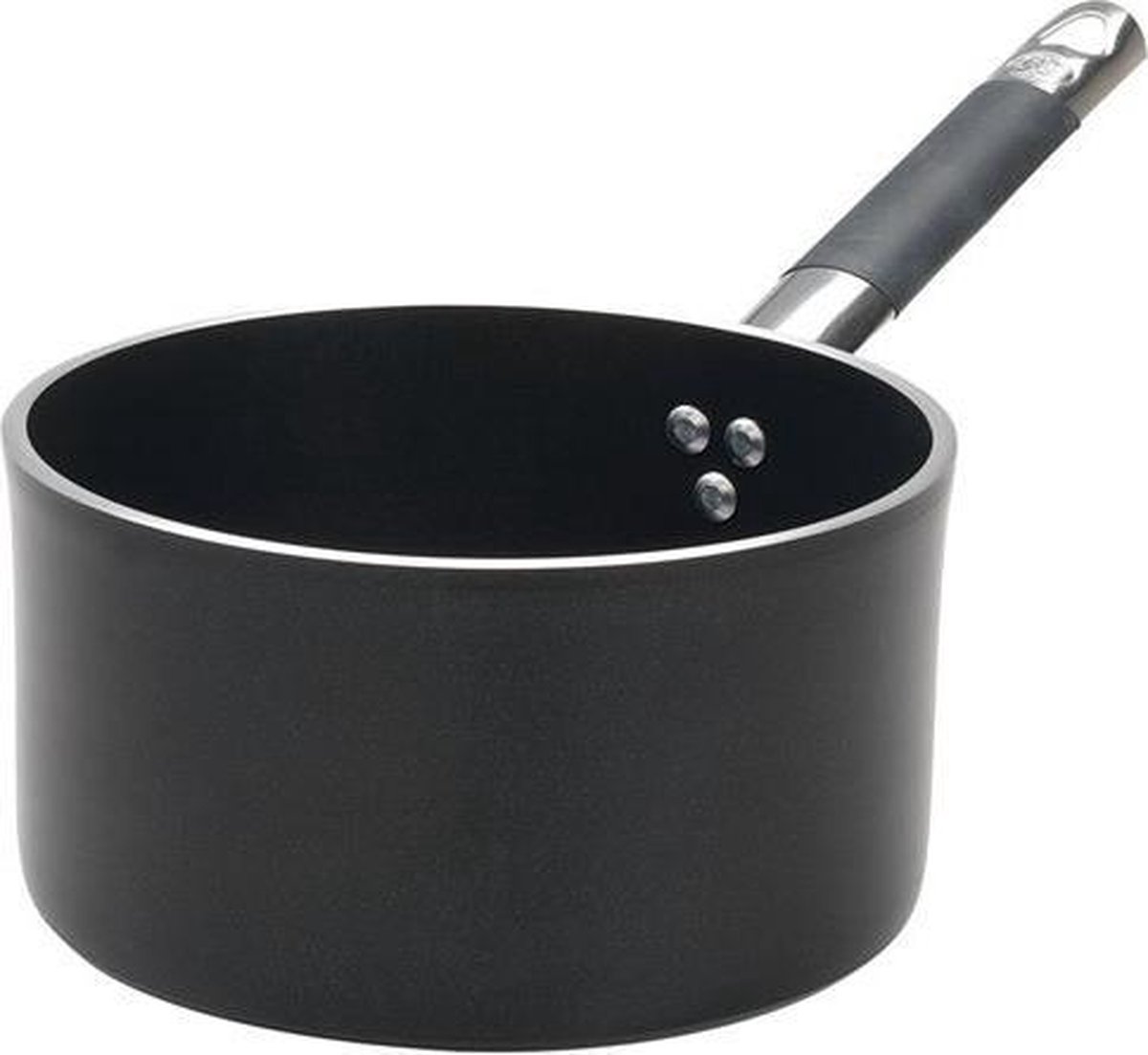 PROFESSIONELE STEELPAN 16CM (H8CM) AL BLACK AGNELLI 5MM DIK MET "COOL" HANDLE INOX HANDLE - Kookstore.nl