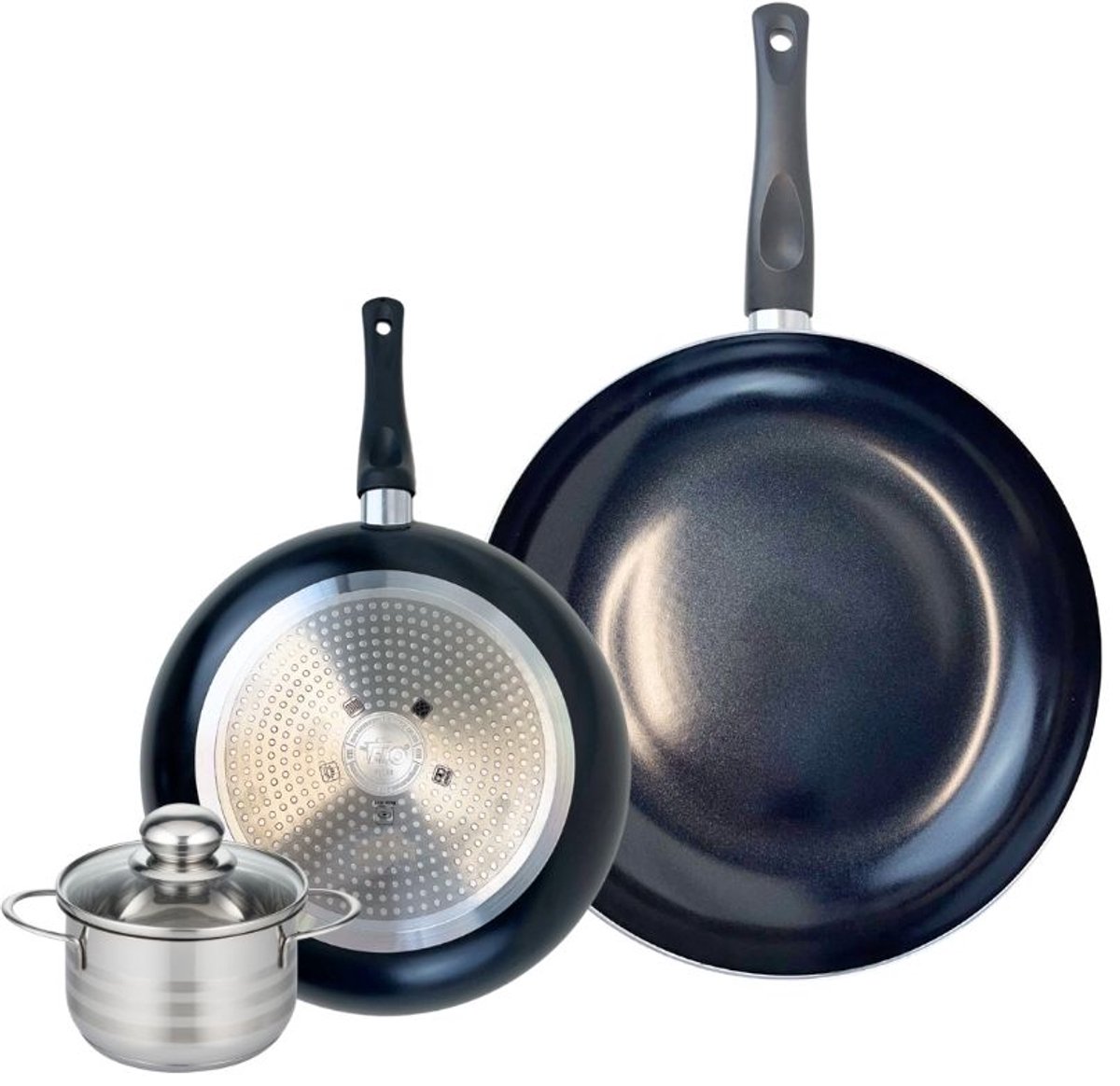 ELO 9734150 Keukengerei 3-delig, Set van 2 Koekenpannen 24 en 32 cm en 1 steelpan 12 cm Elo Prima Glanzend, roestvrij staal, inductie