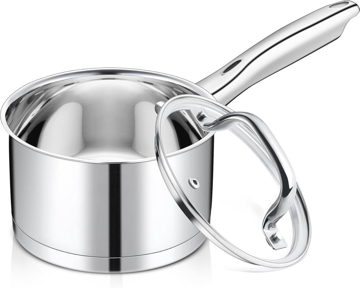 Ben je op zoek naar een betaalbare en veelzijdige steelpan? Ontdek deze 16 cm steelpan van hoogwaardig roestvrij staal, perfect voor koken, verwarmen en koken. Het klassieke drielaagse bodemontwerp waarborgt snelle warmteoverdracht en gelijkmatige verwarming, waardoor plakken en papperigheid worden voorkomen. Dankzij het rechthoekige bodemontwerp kun je meer voedsel bereiden dan met een traditionele melkpan van dezelfde grootte. Deze steelpan is geschikt voor alle warmtebronnen, inclusief inductie. Met een inhoud van 1,9 liter en een zichtbaar glazen deksel, hoef je het deksel niet op te tillen om de gaarstatus te controleren. De met klinknagels versterkte handgreep biedt extra stevigheid en duurzaamheid. Zorg ervoor dat je de pan voor het eerst wast met zeepwater en gebruik een zachte spons voor een lange levensduur.