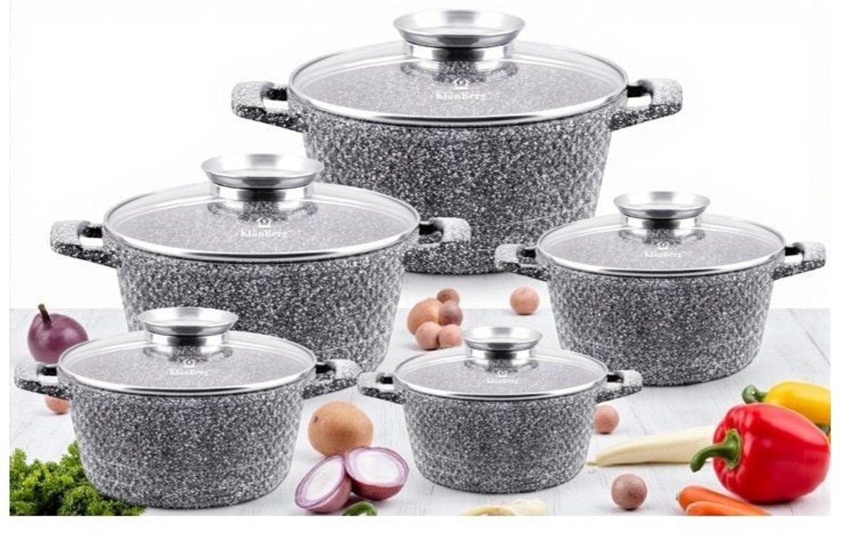 10-delige Pannenset – Kookpannen – Braadpannen – Stoofpannen – Pottenset – Marmer Coating – Inductie Geschikt – Anti-aanbaklaag