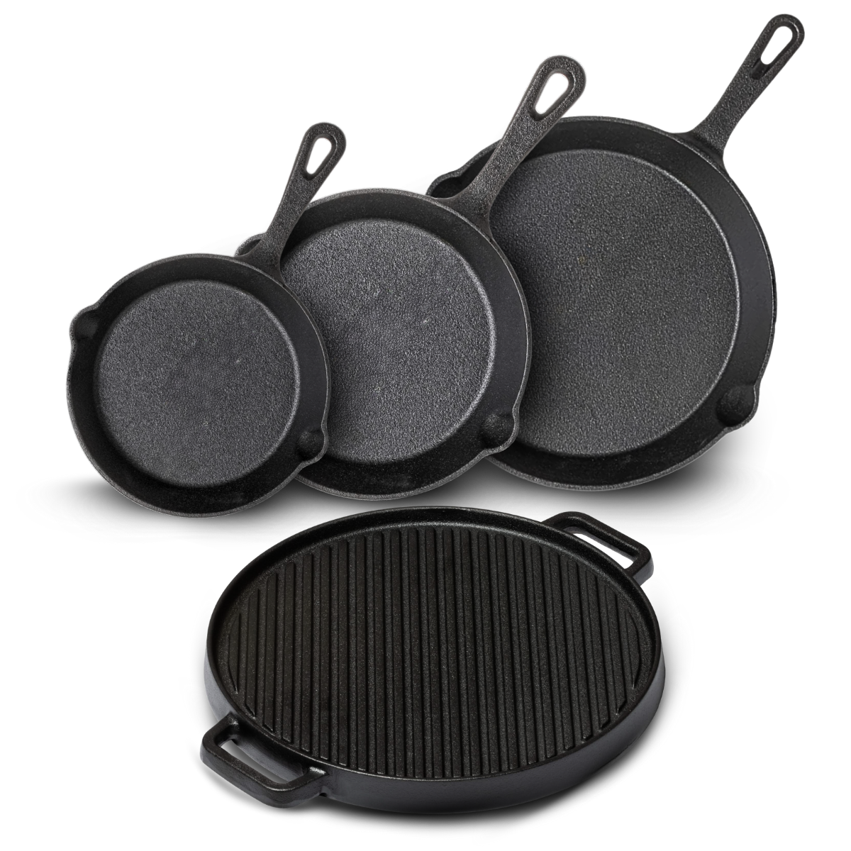 Blackwell Pannenset Gietijzer 4-Delig Koekenpan 16, 20 & 25 cm & Grillplaat ø 30 cm - geschikt voor alle warmtebronnen - zonder anti-aanbaklaag - Kookstore.nl