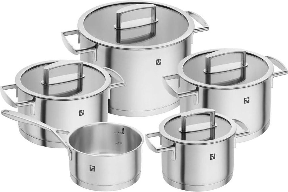 Waarom kiezen voor de 5-delige ZWILLING Vitality pannenset? Deze 5-delige pannenset in een klassiek design is geschikt voor alle warmtebronnen, inclusief inductie. Of je nu op zoek bent naar een basis-set of een aanvulling op je bestaande pannensets, de ZWILLING Vitality pannenset biedt alles wat je nodig hebt voor efficiënt koken.