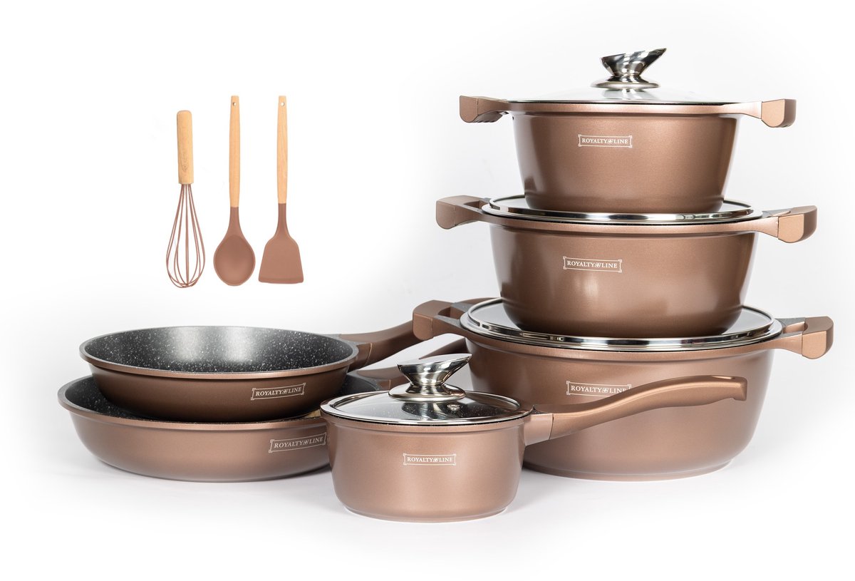 Royalty Line® BS1010 Pannenset Inductie – 13 Delige Pannensets – Kookpotten Met Antiaanbaklaag – PFOA & PTFE Vrij – Pannen Voor Alle Warmtebronnen – Koper